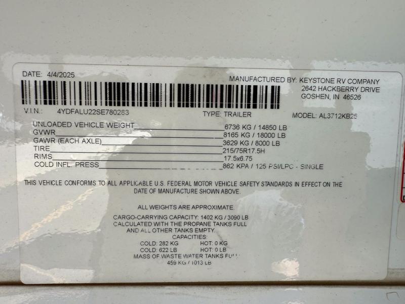 New 2025 Keystone RV Alpine 3712KB Fifth Wheel