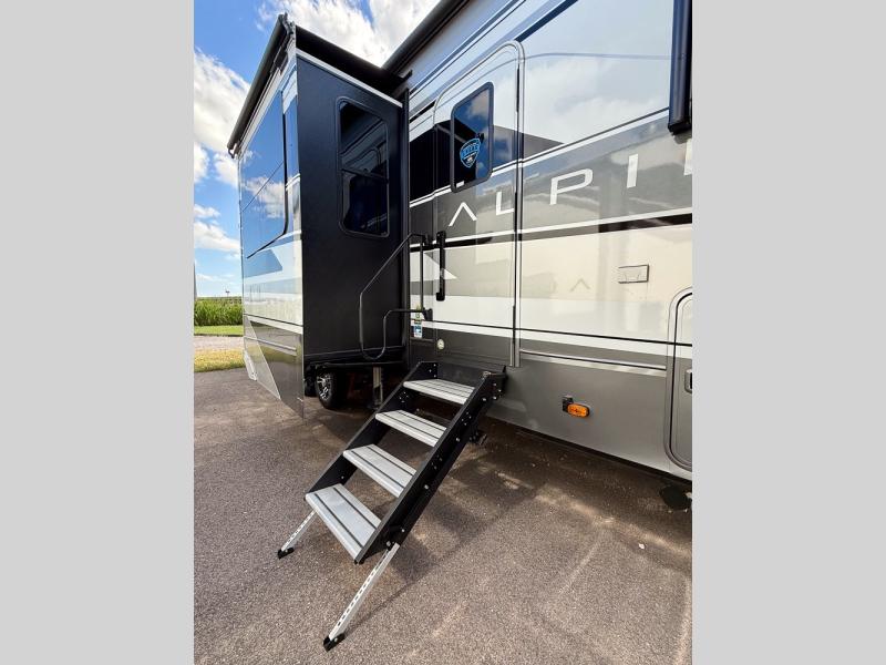 Luxury is not an option, it is a standard with each one of these Keystone RV Alpine fifth wheels! A 8' 4" wide body construction will create an open, residential feeling, and cutting-edge technology will provide a hassle-free camping experience. The Tru-Fit slide construction is more durable and minimizes motor structural stress, as well as resists leaking, and the Blade Pure airflow system provides residential comfort with its high-performance. Each fifth wheel includes designer flooring throughout, stunning solid wood cabinet doors, luxurious crown molding, and solid surface countertops in the kitchen. The exterior also includes an outside shower with hot and cold water, Lippert strut assisted SolidSteps, Hitch Vision with LED lighting, and many more conveniences!