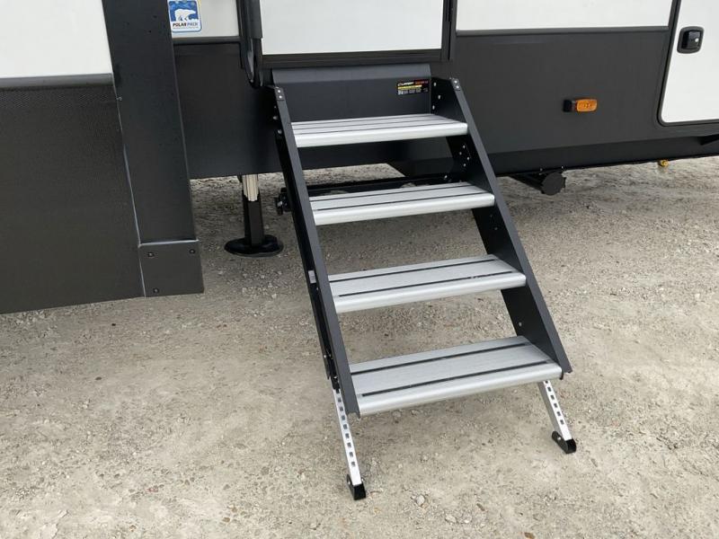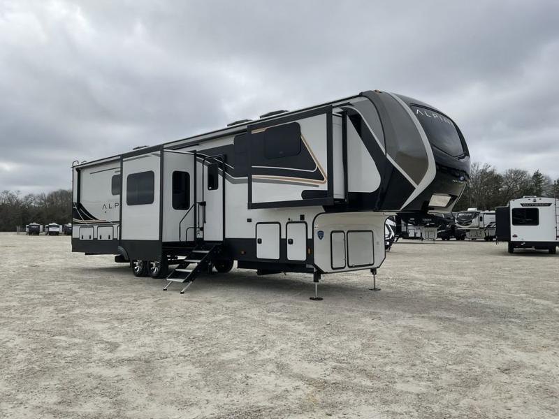 Luxury is not an option, it is a standard with each one of these Keystone RV Alpine fifth wheels! A 8' 4" wide body construction will create an open, residential feeling, and cutting-edge technology will provide a hassle-free camping experience. The Tru-Fit slide construction is more durable and minimizes motor structural stress, as well as resists leaking, and the Blade Pure airflow system provides residential comfort with its high-performance. Each fifth wheel includes designer flooring throughout, stunning solid wood cabinet doors, luxurious crown molding, and solid surface countertops in the kitchen. The exterior also includes an outside shower with hot and cold water, Lippert strut assisted SolidSteps, Hitch Vision with LED lighting, and many more conveniences!