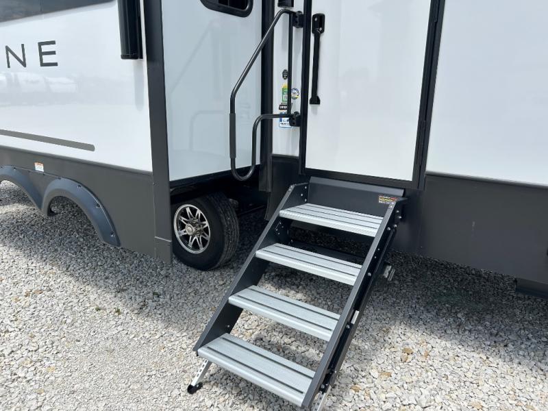 Luxury is not an option, it is a standard with each one of these Keystone RV Alpine fifth wheels! A 8' 4" wide body construction will create an open, residential feeling, and cutting-edge technology will provide a hassle-free camping experience. The Tru-Fit slide construction is more durable and minimizes motor structural stress, as well as resists leaking, and the Blade Pure airflow system provides residential comfort with its high-performance. Each fifth wheel includes designer flooring throughout, stunning solid wood cabinet doors, luxurious crown molding, and solid surface countertops in the kitchen. The exterior also includes an outside shower with hot and cold water, Lippert strut assisted SolidSteps, Hitch Vision with LED lighting, and many more conveniences!