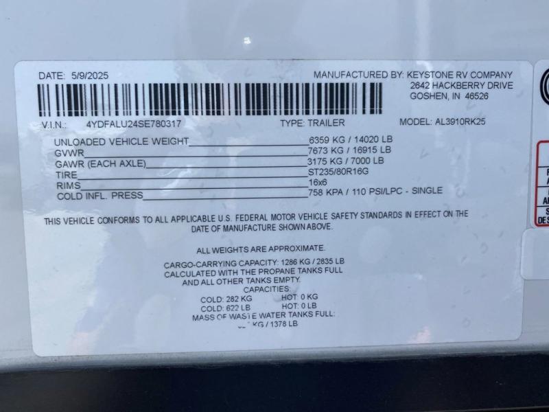 New 2025 Keystone RV Alpine 3910RK Fifth Wheel
