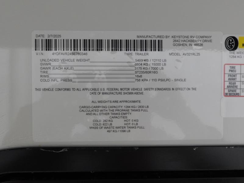 New 2025 Keystone RV Alpine Avalanche Edition 321RL Fifth Wheel