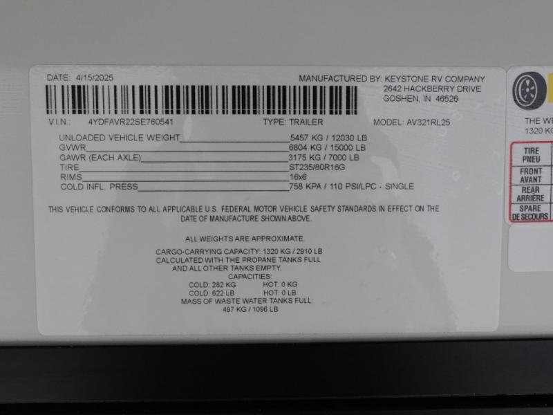 New 2025 Keystone RV Alpine Avalanche Edition 321RL Fifth Wheel