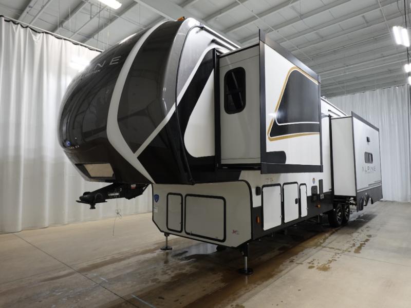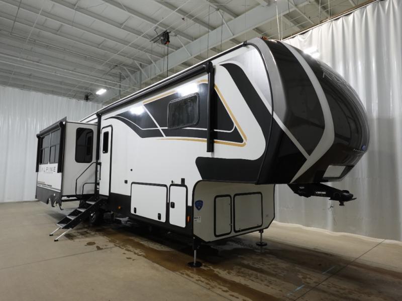 With any Keystone luxury Alpine Avalanche Edition fifth wheel, you will experience wide-body construction that allows you to stretch out and stay awhile during any season thanks to the Polar Pack All Season Protection that includes a heated and enclosed underbelly, an Astro foil reflective layer on the roof, front and rear walls, and two static attic vents, plus more! The interior offers hardwood slide out fascia with wood accents, crown molding, plus your choice of modern interior design. There are many more Keystone exclusives, like the Tru-Fit slide construction, the in-floor heating ducts, KeyTV™, and much more to bring you a full-packed, luxury fifth wheel!