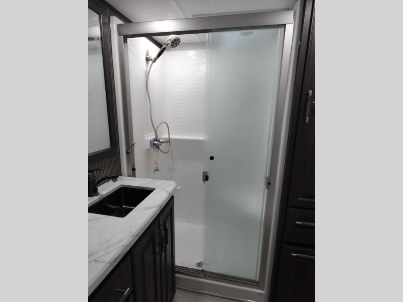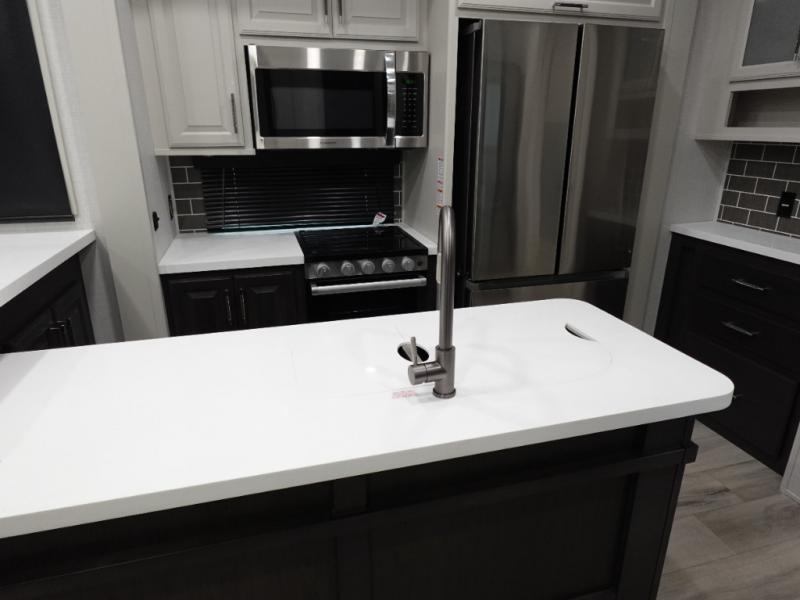 With any Keystone luxury Alpine Avalanche Edition fifth wheel, you will experience wide-body construction that allows you to stretch out and stay awhile during any season thanks to the Polar Pack All Season Protection that includes a heated and enclosed underbelly, an Astro foil reflective layer on the roof, front and rear walls, and two static attic vents, plus more! The interior offers hardwood slide out fascia with wood accents, crown molding, plus your choice of modern interior design. There are many more Keystone exclusives, like the Tru-Fit slide construction, the in-floor heating ducts, KeyTV™, and much more to bring you a full-packed, luxury fifth wheel!