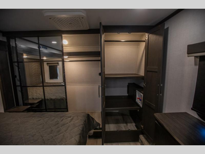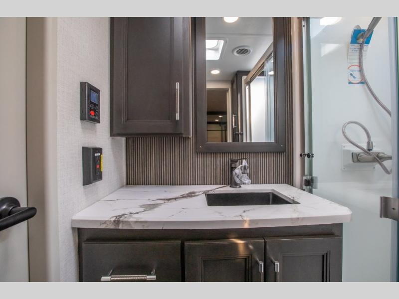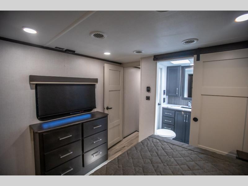 With any Keystone luxury Alpine Avalanche Edition fifth wheel, you will experience wide-body construction that allows you to stretch out and stay awhile during any season thanks to the Polar Pack All Season Protection that includes a heated and enclosed underbelly, an Astro foil reflective layer on the roof, front and rear walls, and two static attic vents, plus more! The interior offers hardwood slide out fascia with wood accents, crown molding, plus your choice of modern interior design. There are many more Keystone exclusives, like the Tru-Fit slide construction, the in-floor heating ducts, KeyTV™, and much more to bring you a full-packed, luxury fifth wheel!