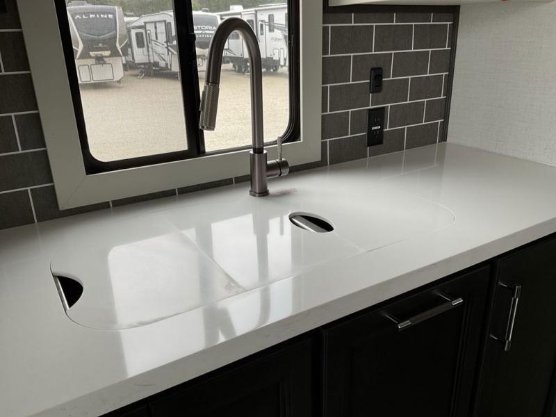 With any Keystone luxury Alpine Avalanche Edition fifth wheel, you will experience wide-body construction that allows you to stretch out and stay awhile during any season thanks to the Polar Pack All Season Protection that includes a heated and enclosed underbelly, an Astro foil reflective layer on the roof, front and rear walls, and two static attic vents, plus more! The interior offers hardwood slide out fascia with wood accents, crown molding, plus your choice of modern interior design. There are many more Keystone exclusives, like the Tru-Fit slide construction, the in-floor heating ducts, KeyTV™, and much more to bring you a full-packed, luxury fifth wheel!