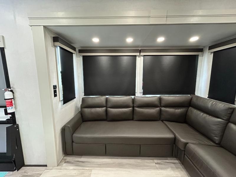 LARGEST L-SHAPED SOFA / REAR KITCHEN / 6 POINT HYDRAULIC AUTO LEVELING / 5 SLIDE TOPPERS / SOLAR FLEX PROTECT / 3 AC !!
