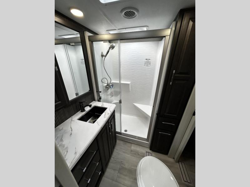 With any Keystone luxury Alpine Avalanche Edition fifth wheel, you will experience wide-body construction that allows you to stretch out and stay awhile during any season thanks to the Polar Pack All Season Protection that includes a heated and enclosed underbelly, an Astro foil reflective layer on the roof, front and rear walls, and two static attic vents, plus more! The interior offers hardwood slide out fascia with wood accents, crown molding, plus your choice of modern interior design. There are many more Keystone exclusives, like the Tru-Fit slide construction, the in-floor heating ducts, KeyTV™, and much more to bring you a full-packed, luxury fifth wheel!