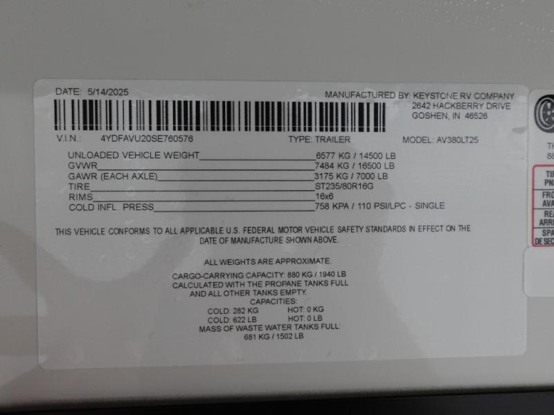 New 2025 Keystone RV Alpine Avalanche Edition 380LT Fifth Wheel