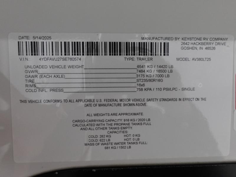 New 2025 Keystone RV Alpine Avalanche Edition 380LT Fifth Wheel