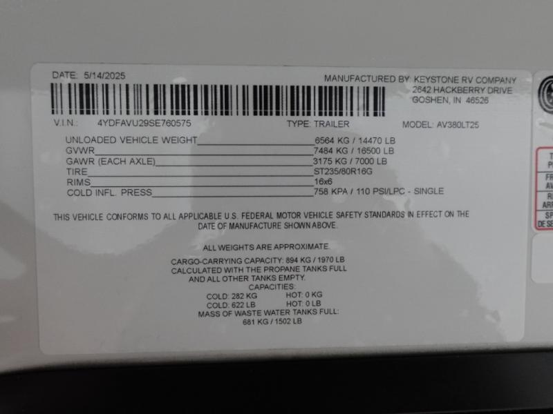 New 2025 Keystone RV Alpine Avalanche Edition 380LT Fifth Wheel