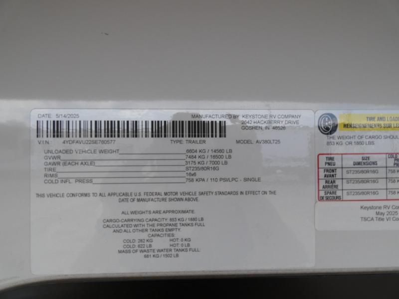 New 2025 Keystone RV Alpine Avalanche Edition 380LT Fifth Wheel