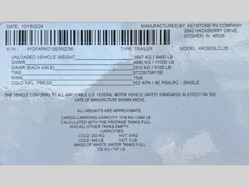 | Awning Info | 19' Electric with Gas Strut Arm |