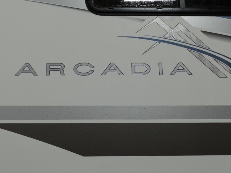 Each Arcadia 3/4 ton fifth wheel by Keystone includes a Revolutionary NGC2 Next Generation crawlspace chassis, a SpaceSaver upper deck design, and a Curt equalization suspension system for a smooth towing experience. You will find abundant storage space throughout, residential Roman shades with black-out backing, designer vinyl flooring throughout, and custom cabinetry with solid wood and painted cabinet doors. Each model includes the exclusive Blade Pure high-performance air handling system for increased A/C airflow, along with a 35K BTU high output furnace for added comfort. The Arcadia is constructed with fully laminated, aluminum framed one-piece sidewalls, an automotive-grade high-gloss fiberglass exterior, plus an automotive-grade fiberglass front cap with KeyShield protection to keep your fifth wheel looking sleek for years to come.