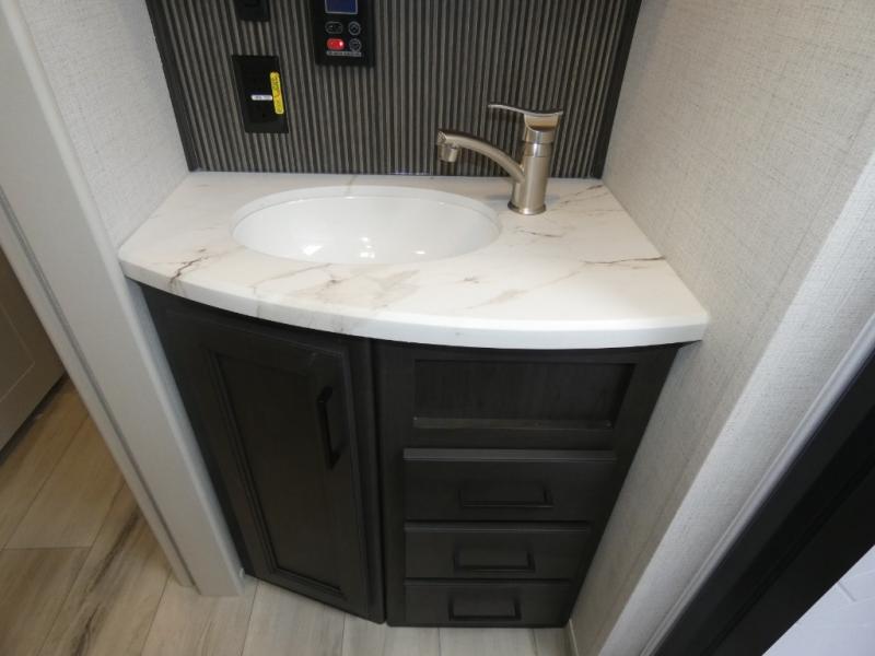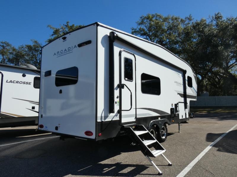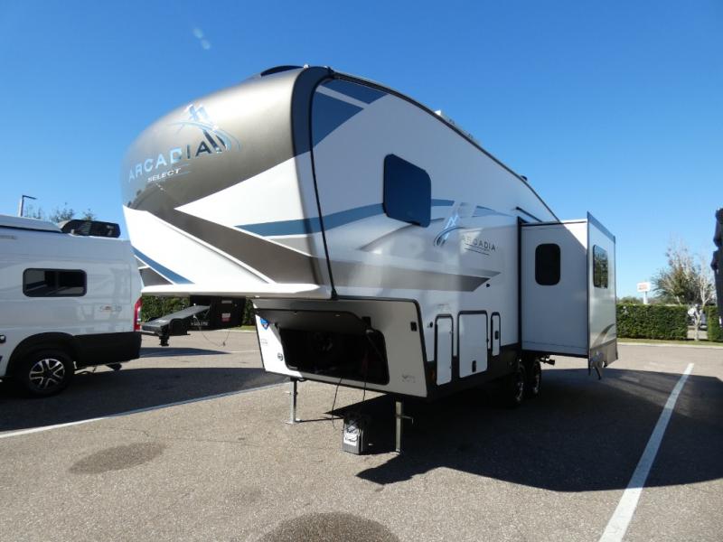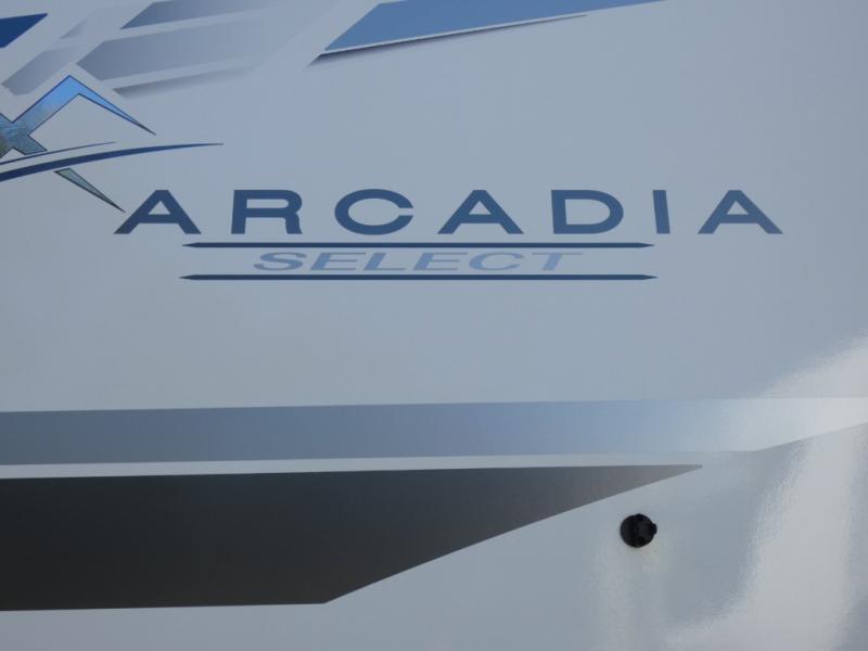 With any Arcadia Select fifth wheel by Keystone you will enjoy easy towability and at-home comforts at an affordable price! The laminated sidewalls with five sided aluminum superstructure will provide a strong foundation so you can enjoy your RV for years to come, plus a one-piece, heated and enclosed polypropylene underbelly means you can camp year around! And an upgraded Roto-Flex hitch pin with will make it easy to tow. Head inside to find tall slides for added space, seamless, pressed countertops, convenient underbed storage, and a large shower with a retractable door and skylight. These fifth wheels also include a Blade Pure A/C system, Girard on-demand tankless water heater, two 30 lb. LP tanks, and more utilities to make your camping experience run smoothly.