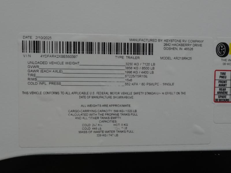 New 2025 Keystone RV Arcadia Select 21SRK Fifth Wheel