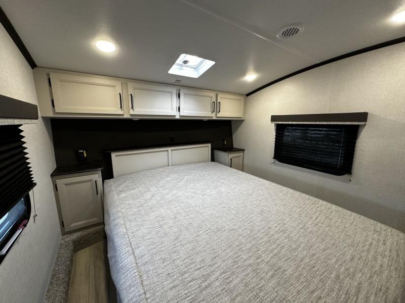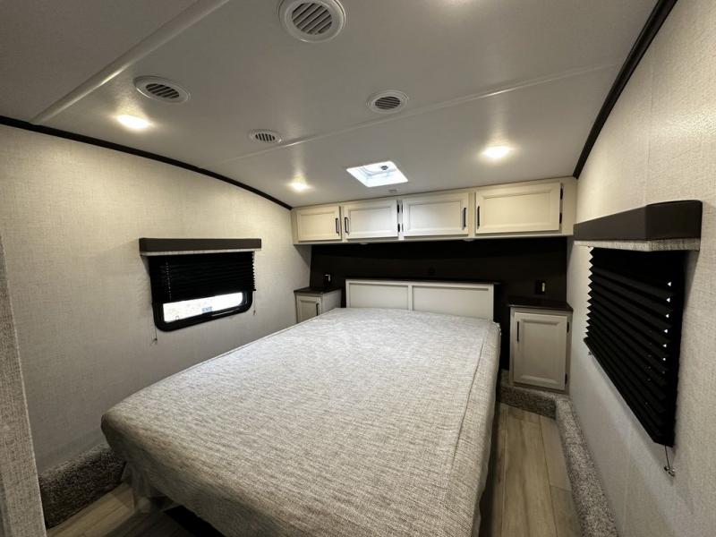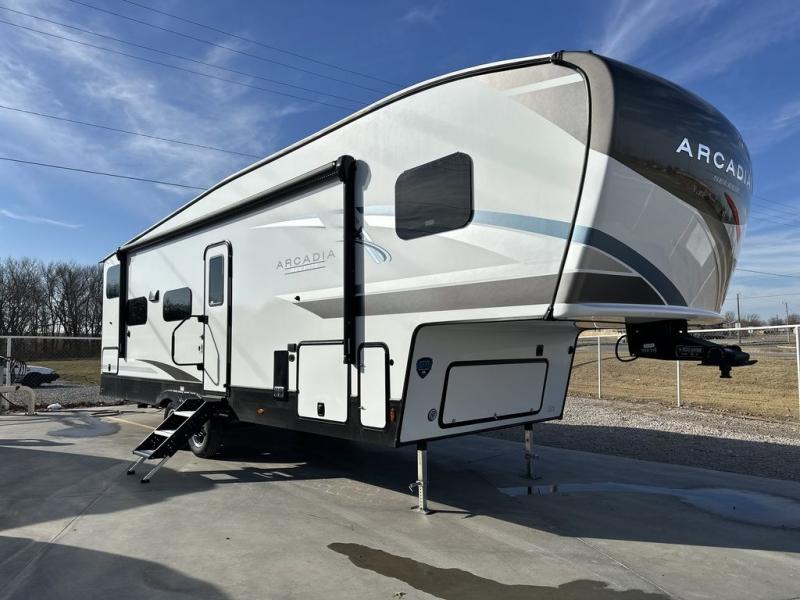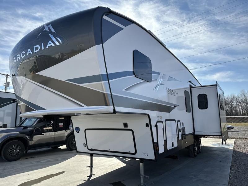 With any Arcadia Select fifth wheel by Keystone you will enjoy easy towability and at-home comforts at an affordable price! The laminated sidewalls with five sided aluminum superstructure will provide a strong foundation so you can enjoy your RV for years to come, plus a one-piece, heated and enclosed polypropylene underbelly means you can camp year around! And an upgraded Roto-Flex hitch pin will make it easy to tow. Head inside to find tall slides for added space, seamless, pressed countertops, convenient underbed storage, and a large shower with a retractable door and skylight. These fifth wheels also include a Blade Pure A/C system, Girard on-demand tankless water heater, two 30 lb. LP tanks, and more utilities to make your camping experience run smoothly.