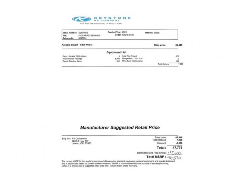 New 2025 Keystone RV Arcadia Select 27SBH Fifth Wheel
