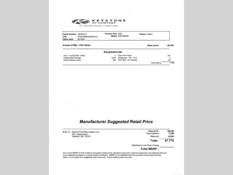 New 2025 Keystone RV Arcadia Select 27SBH Fifth Wheel