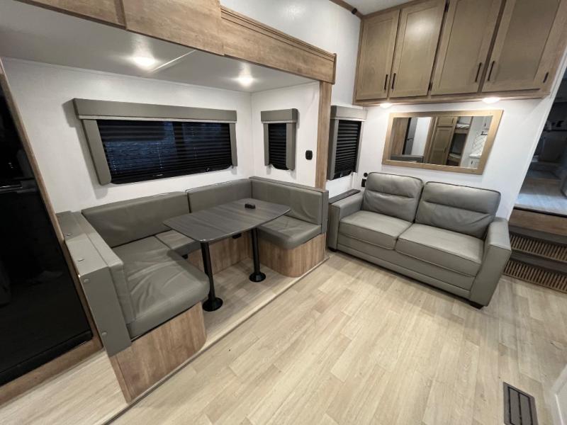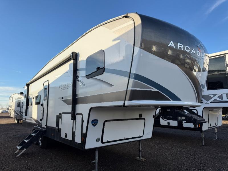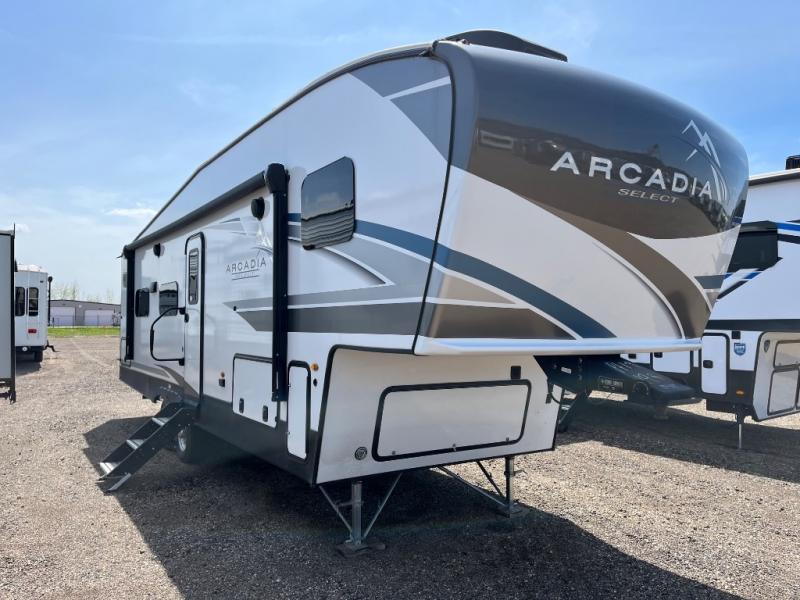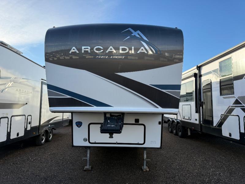 With any Arcadia Select fifth wheel by Keystone you will enjoy easy towability and at-home comforts at an affordable price! The laminated sidewalls with five sided aluminum superstructure will provide a strong foundation so you can enjoy your RV for years to come, plus a one-piece, heated and enclosed polypropylene underbelly means you can camp year around! And an upgraded Roto-Flex hitch pin will make it easy to tow. Head inside to find tall slides for added space, seamless, pressed countertops, convenient underbed storage, and a large shower with a retractable door and skylight. These fifth wheels also include a Blade Pure A/C system, Girard on-demand tankless water heater, two 30 lb. LP tanks, and more utilities to make your camping experience run smoothly.