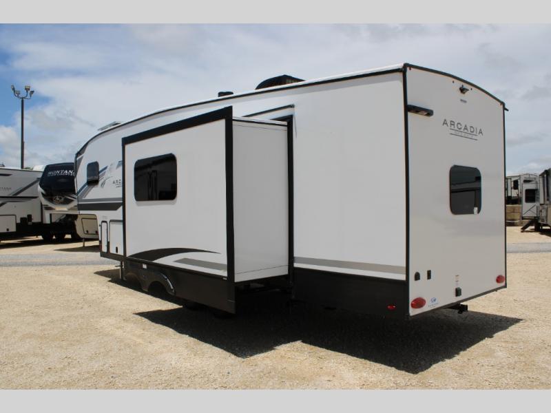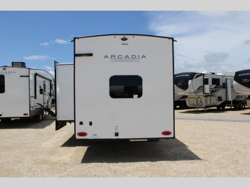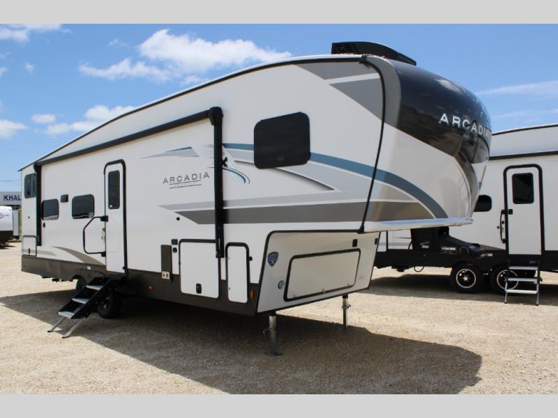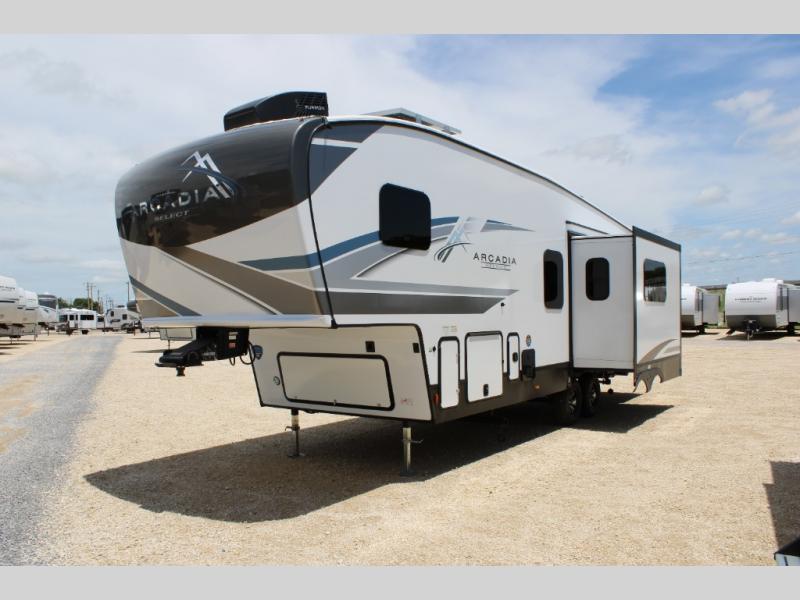 With any Arcadia Select fifth wheel by Keystone you will enjoy easy towability and at-home comforts at an affordable price! The laminated sidewalls with five sided aluminum superstructure will provide a strong foundation so you can enjoy your RV for years to come, plus a one-piece, heated and enclosed polypropylene underbelly means you can camp year around! And an upgraded Roto-Flex hitch pin will make it easy to tow. Head inside to find tall slides for added space, seamless, pressed countertops, convenient underbed storage, and a large shower with a retractable door and skylight. These fifth wheels also include a Blade Pure A/C system, Girard on-demand tankless water heater, two 30 lb. LP tanks, and more utilities to make your camping experience run smoothly.