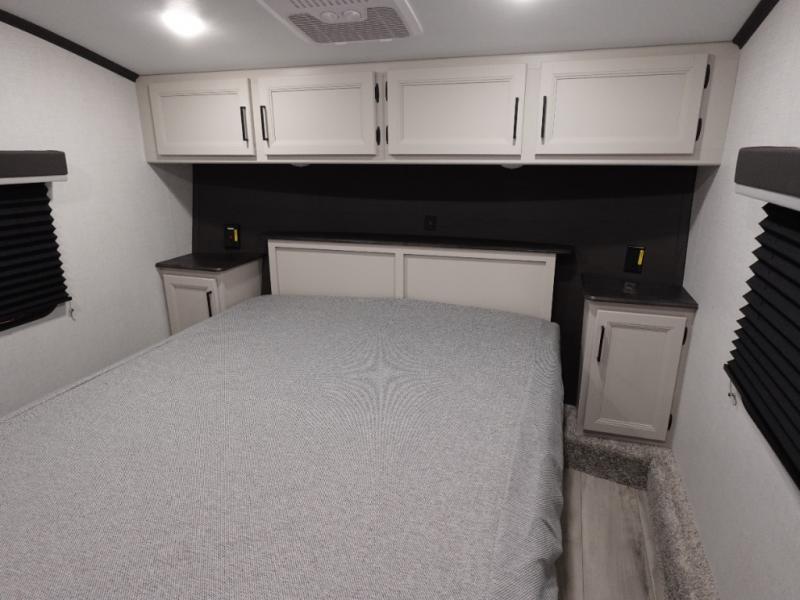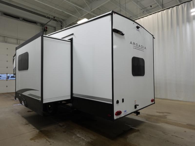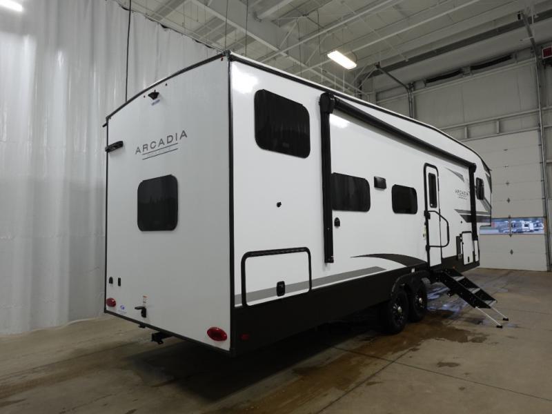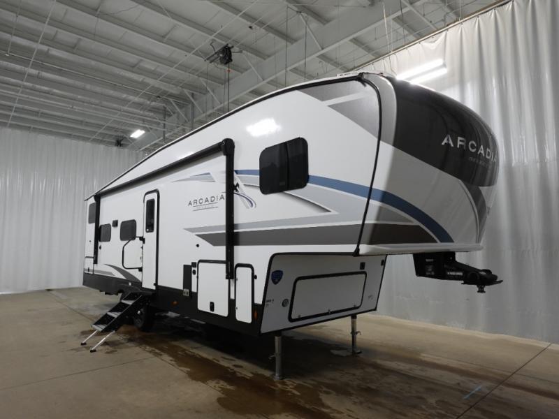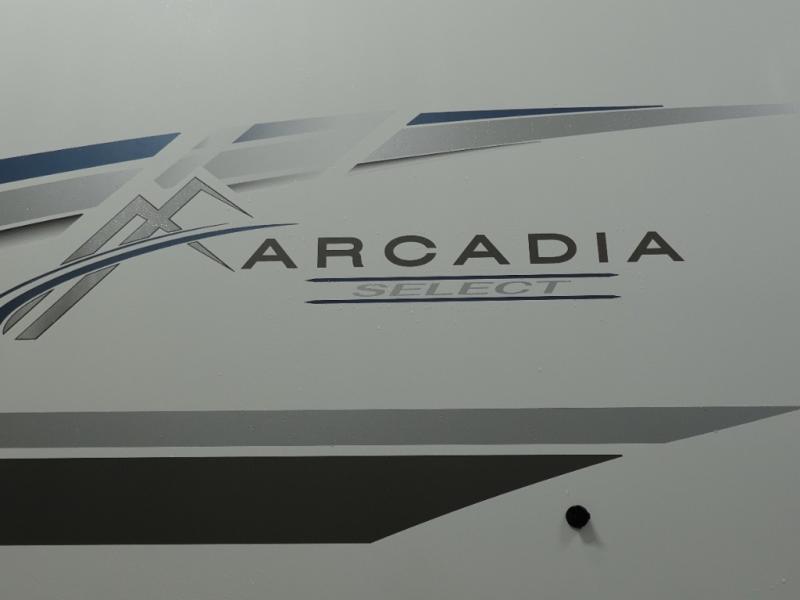 With any Arcadia Select fifth wheel by Keystone you will enjoy easy towability and at-home comforts at an affordable price! The laminated sidewalls with five sided aluminum superstructure will provide a strong foundation so you can enjoy your RV for years to come, plus a one-piece, heated and enclosed polypropylene underbelly means you can camp year around! And an upgraded Roto-Flex hitch pin will make it easy to tow. Head inside to find tall slides for added space, seamless, pressed countertops, convenient underbed storage, and a large shower with a retractable door and skylight. These fifth wheels also include a Blade Pure A/C system, Girard on-demand tankless water heater, two 30 lb. LP tanks, and more utilities to make your camping experience run smoothly.