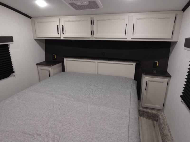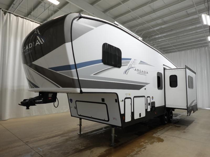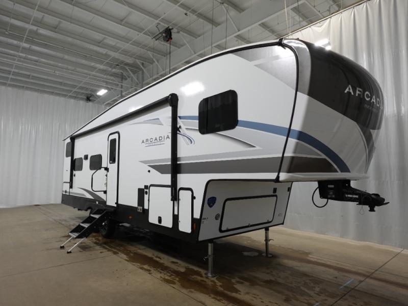 With any Arcadia Select fifth wheel by Keystone you will enjoy easy towability and at-home comforts at an affordable price! The laminated sidewalls with five sided aluminum superstructure will provide a strong foundation so you can enjoy your RV for years to come, plus a one-piece, heated and enclosed polypropylene underbelly means you can camp year around! And an upgraded Roto-Flex hitch pin will make it easy to tow. Head inside to find tall slides for added space, seamless, pressed countertops, convenient underbed storage, and a large shower with a retractable door and skylight. These fifth wheels also include a Blade Pure A/C system, Girard on-demand tankless water heater, two 30 lb. LP tanks, and more utilities to make your camping experience run smoothly.