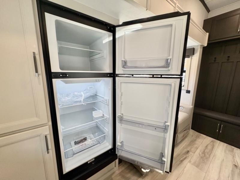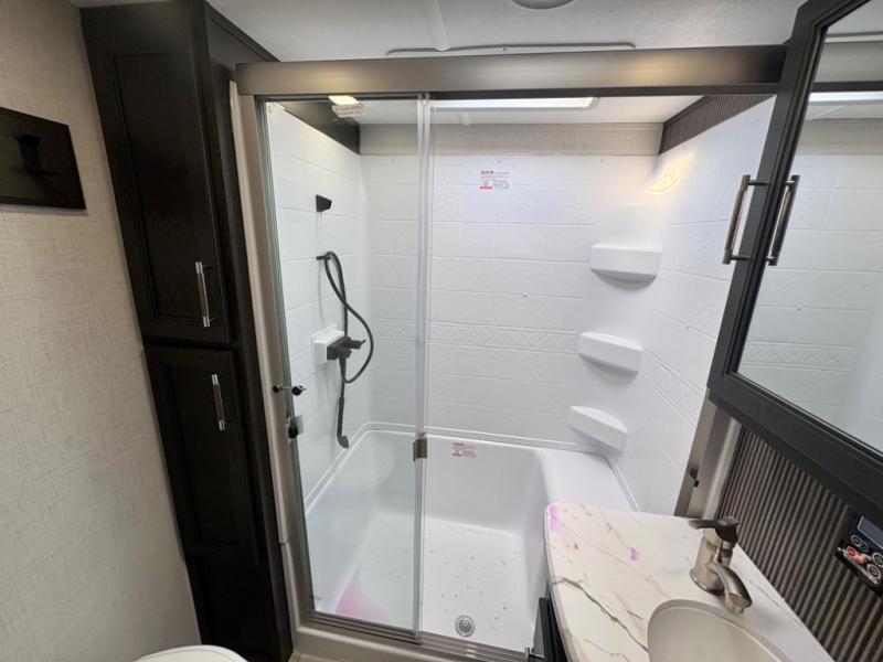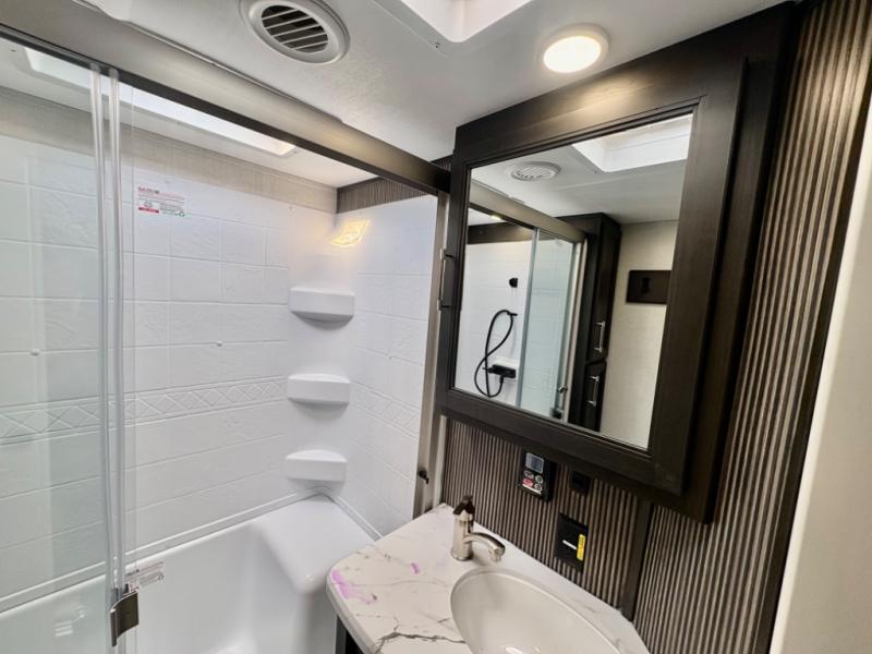 The bathroom features residential-style amenities that add convenience and comfort to your daily routines. High-quality fixtures and functional design help you feel right at home no matter where you’re parked.