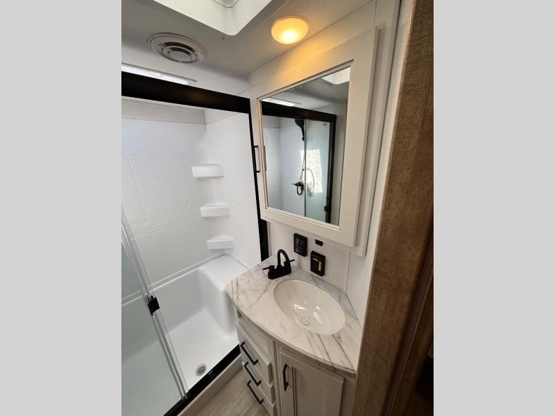 With any Arcadia Super Lite fifth wheel by Keystone, you will enjoy easy-to-tow lengths, unmatched storage, and oversized windows to let the outdoor views in. The structural I-beam frame will provide a strong foundation to your RV, and the Curt Performance Package means you can enjoy hassle-free towing. You will be able to camp year around thanks to the Peak Weather Package that includes a heated and enclosed underbelly, a 35K BTU furnace, and Keystone's exclusive HyperDeck floor that adds an additional layer of insulation to your floor. The interior will make you feel at home with residential hardware, seamless pressed countertops, residential Roman shades throughout, and ample storage space. Sometimes the best things come in smaller packages; choose a Arcadia Super Lite today!