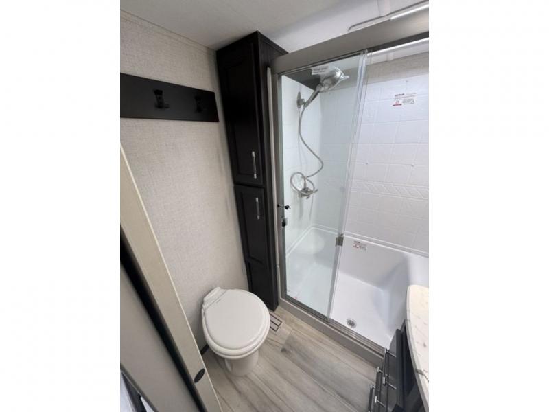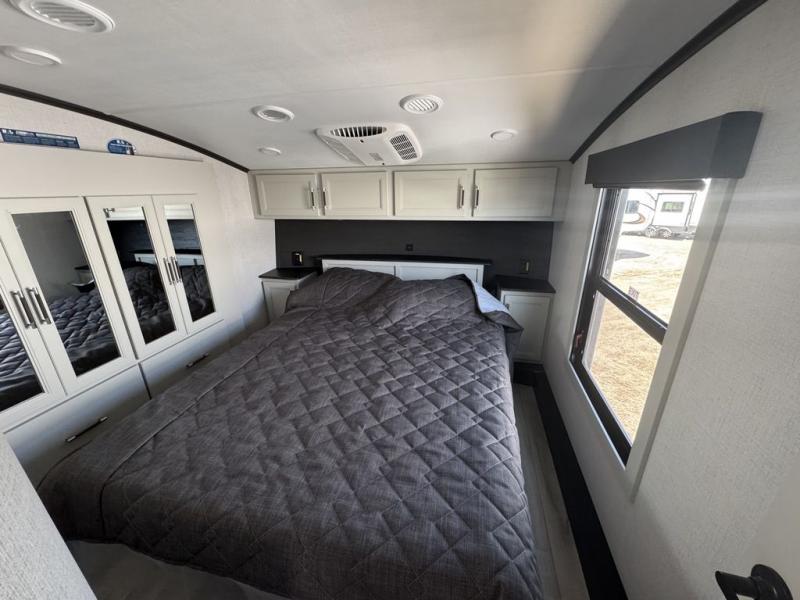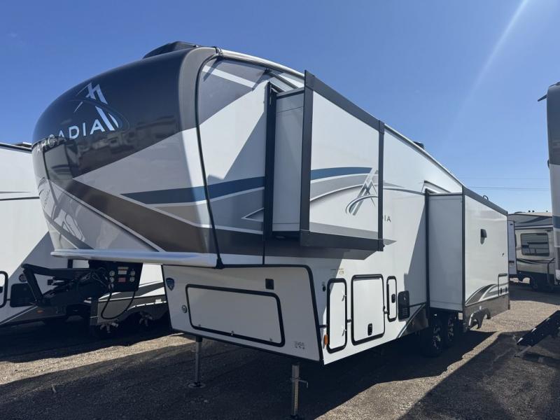With any Arcadia Super Lite fifth wheel by Keystone, you will enjoy easy-to-tow lengths, unmatched storage, and oversized windows to let the outdoor views in. The structural I-beam frame will provide a strong foundation to your RV, and the Curt Performance Package means you can enjoy hassle-free towing. You will be able to camp year around thanks to the Peak Weather Package that includes a heated and enclosed underbelly, a 35K BTU furnace, and Keystone's exclusive HyperDeck floor that adds an additional layer of insulation to your floor. The interior will make you feel at home with residential hardware, seamless pressed countertops, black roller shades, and ample storage space. Sometimes the best things come in smaller packages; choose a Arcadia Super Lite today!