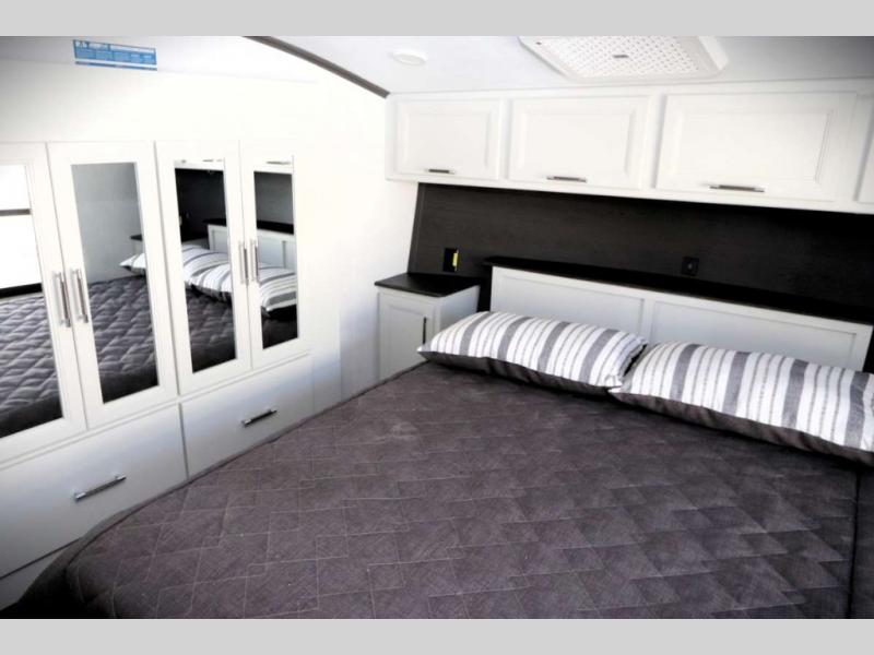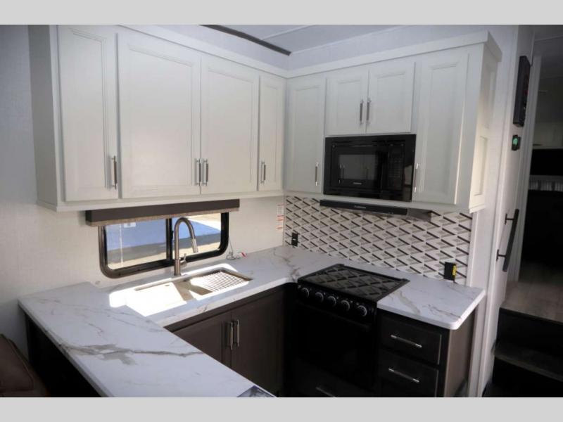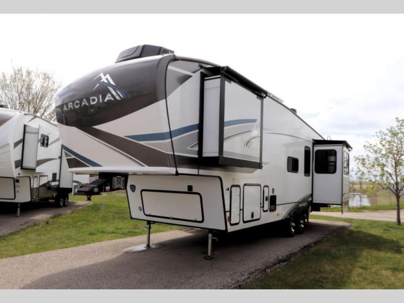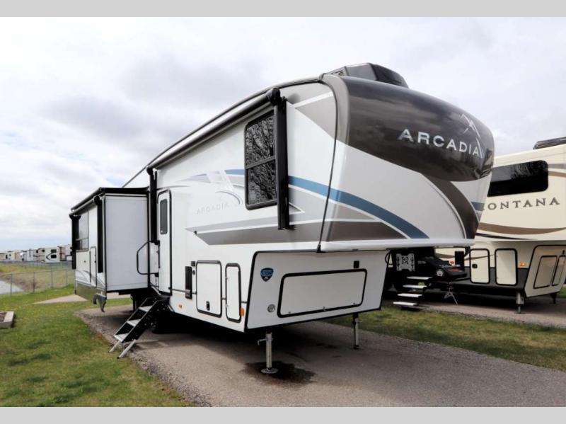 With any Arcadia Super Lite fifth wheel by Keystone, you will enjoy easy-to-tow lengths, unmatched storage, and oversized windows to let the outdoor views in. The structural I-beam frame will provide a strong foundation to your RV, and the Curt Performance Package means you can enjoy hassle-free towing. You will be able to camp year around thanks to the Peak Weather Package that includes a heated and enclosed underbelly, a 35K BTU furnace, and Keystone's exclusive HyperDeck floor that adds an additional layer of insulation to your floor. The interior will make you feel at home with residential hardware, seamless pressed countertops, black roller shades, and ample storage space. Sometimes the best things come in smaller packages; choose a Arcadia Super Lite today!