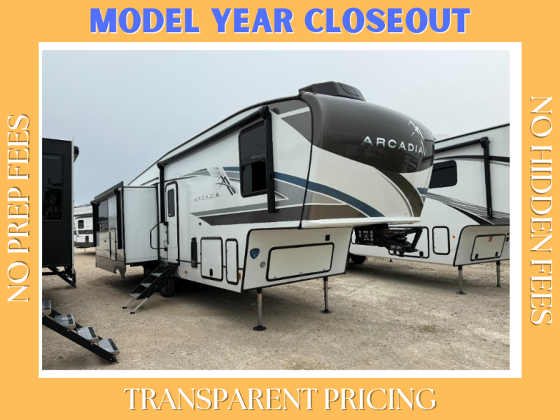 With any Arcadia Super Lite fifth wheel by Keystone, you will enjoy easy-to-tow lengths, unmatched storage, and oversized windows to let the outdoor views in. The structural I-beam frame will provide a strong foundation to your RV, and the Curt Performance Package means you can enjoy hassle-free towing. You will be able to camp year around thanks to the Peak Weather Package that includes a heated and enclosed underbelly, a 35K BTU furnace, and Keystone's exclusive HyperDeck floor that adds an additional layer of insulation to your floor. The interior will make you feel at home with residential hardware, seamless pressed countertops, black roller shades, and ample storage space. Sometimes the best things come in smaller packages; choose a Arcadia Super Lite today!