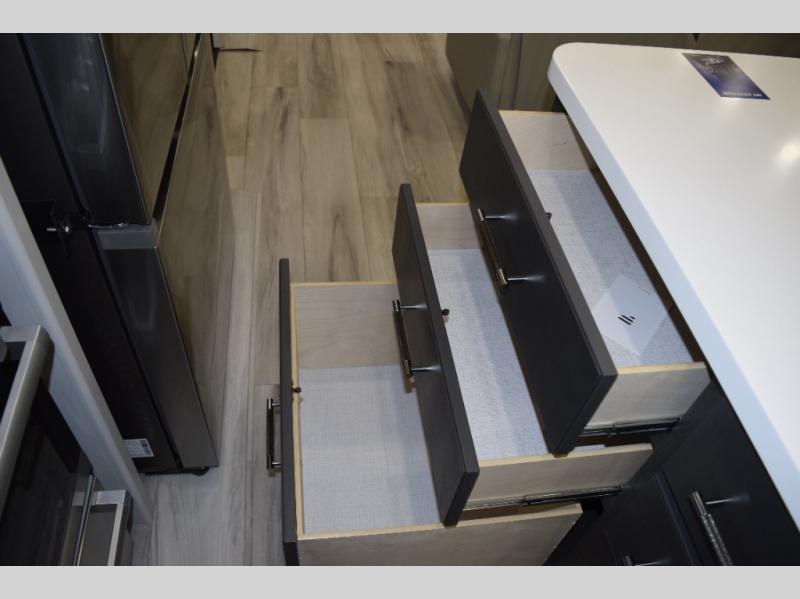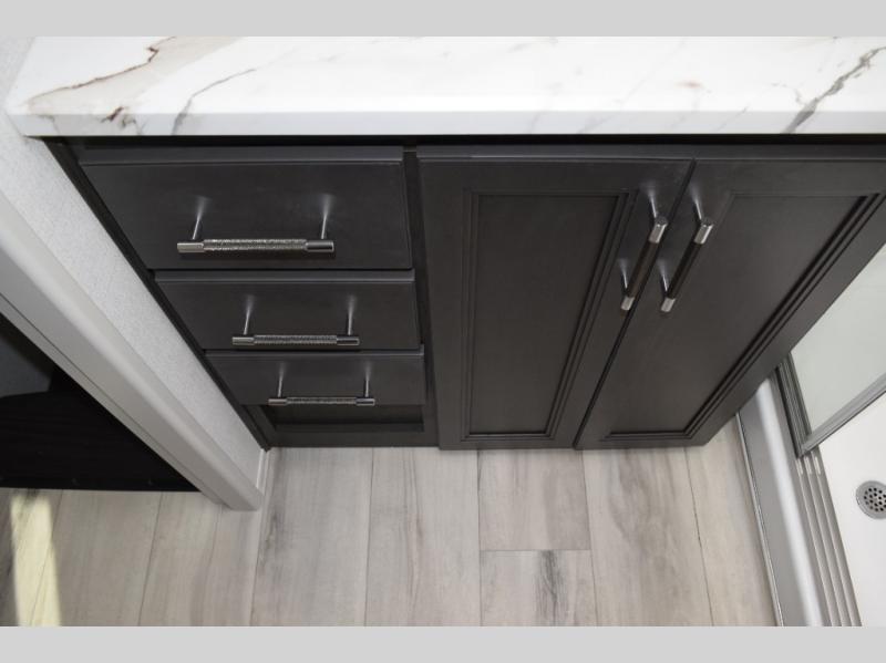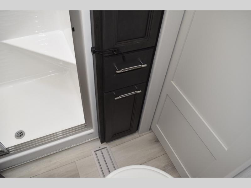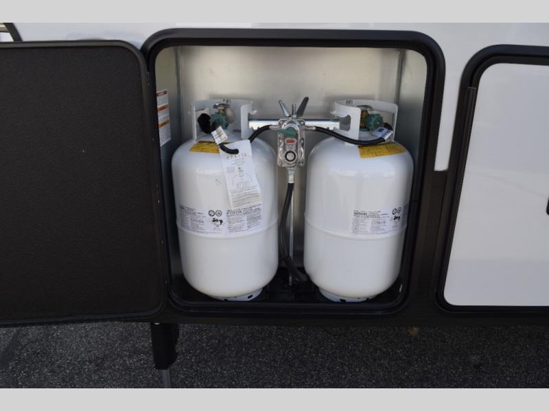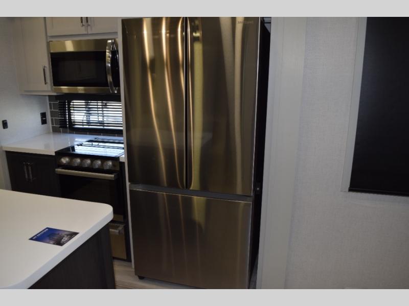 Adventure is never limited by the weather with the Polar Pack All Season Protection! This fifth wheel comes with a heated and enclosed underbelly, Astro foil reflective layers on the roof, front, and rear walls, and two static attic vents, keeping you cozy in any climate. Whether it’s summer heat or winter chills, you’ll always be comfortable.