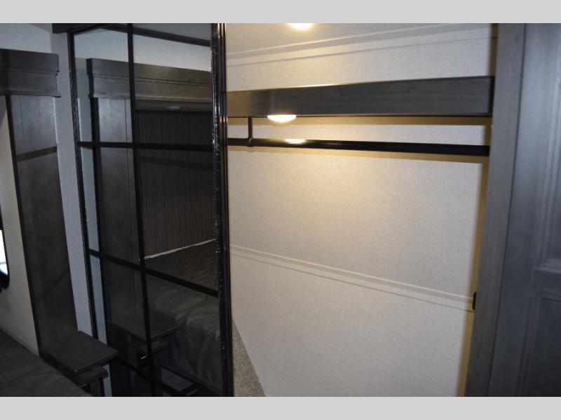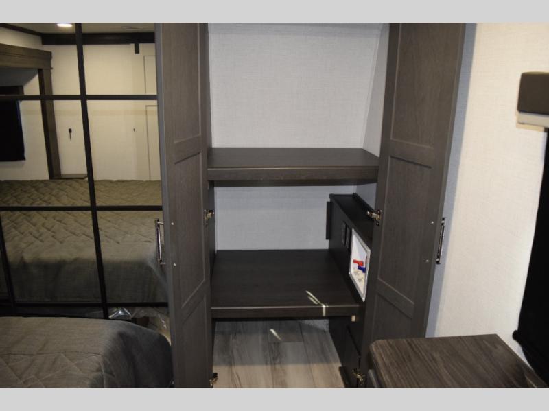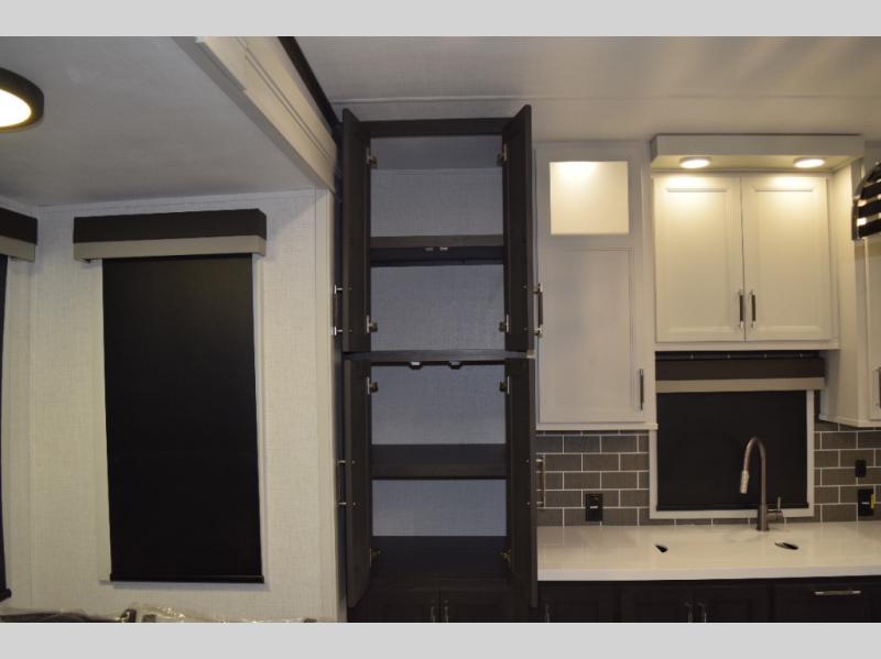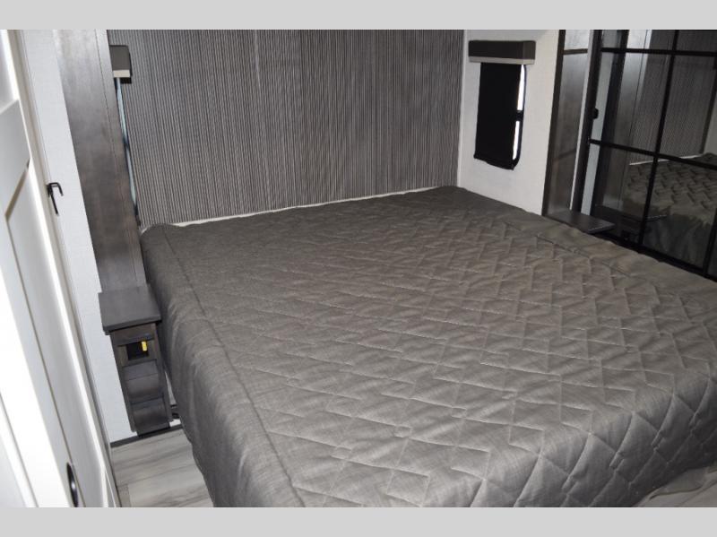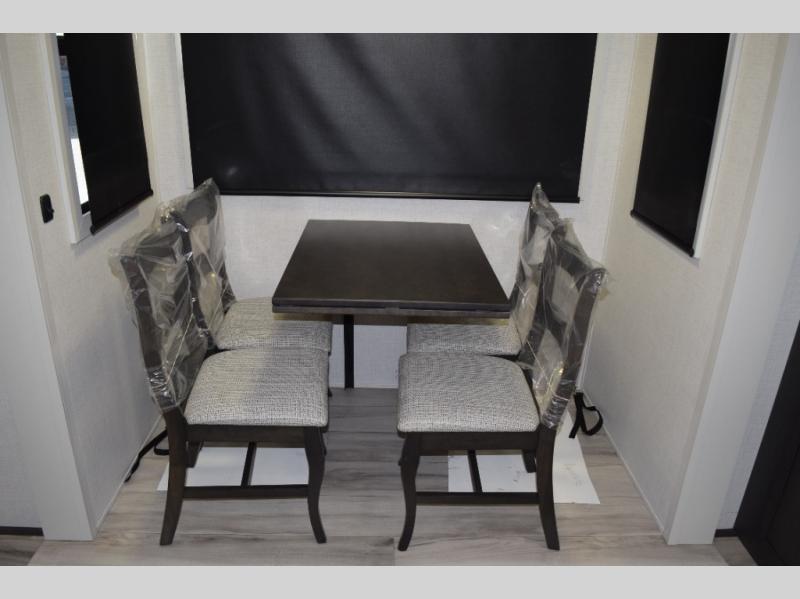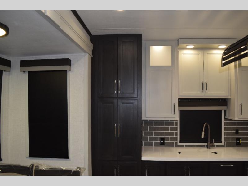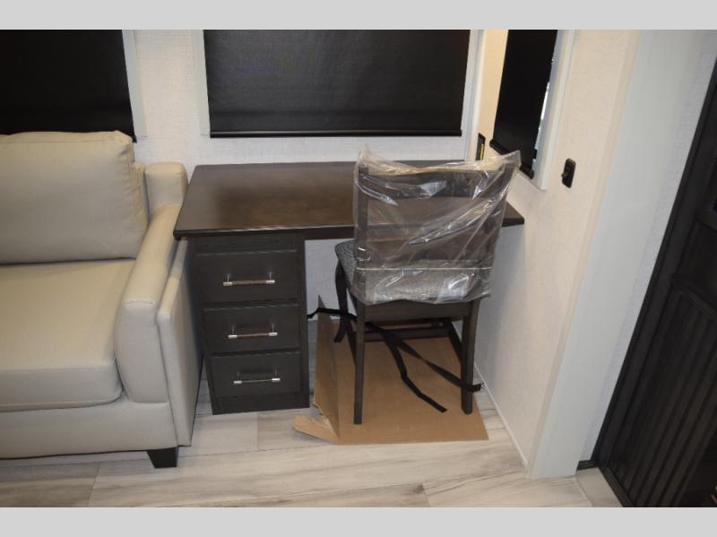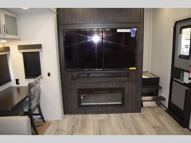 The interior is a feast for the senses with hardwood slide-out fascia, elegant crown molding, and your choice of modern interior designs. The Keystone Tru-Fit Slide Construction, in-floor heating ducts, and KeyTV™ system are just a few of the exclusive features that make this fifth wheel a true luxury experience.