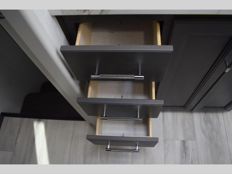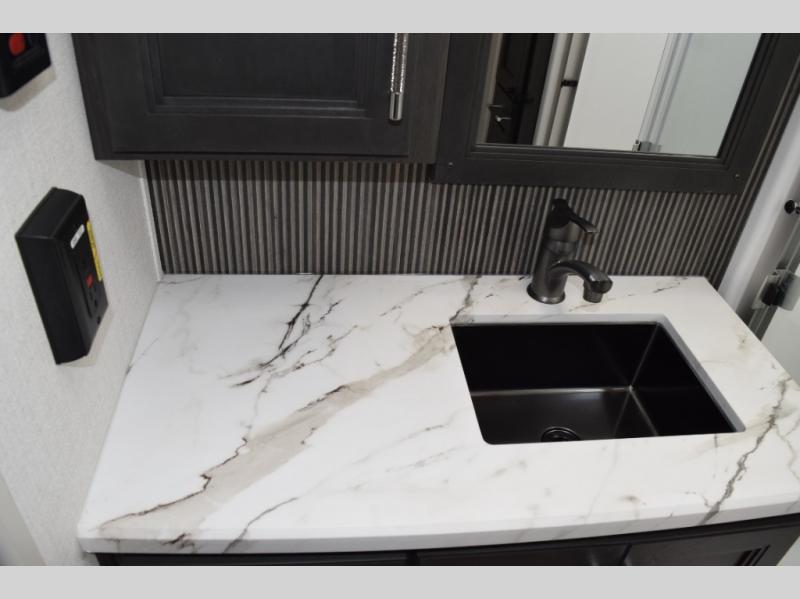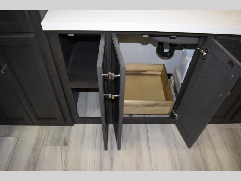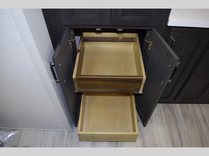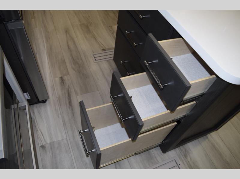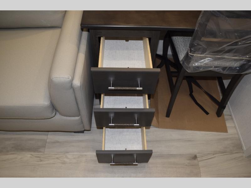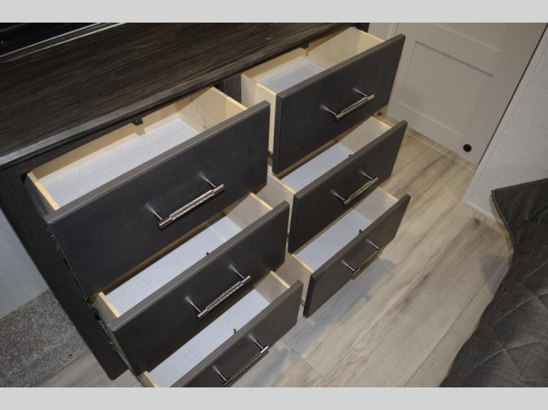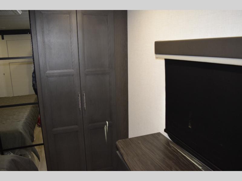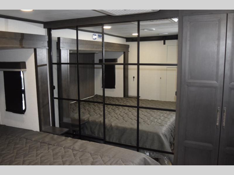 The interior is a feast for the senses with hardwood slide-out fascia, elegant crown molding, and your choice of modern interior designs. The Keystone Tru-Fit Slide Construction, in-floor heating ducts, and KeyTV™ system are just a few of the exclusive features that make this fifth wheel a true luxury experience.