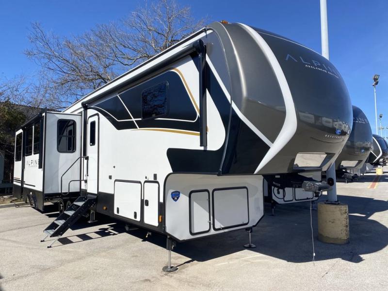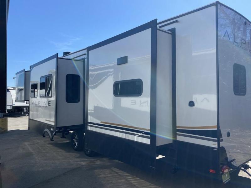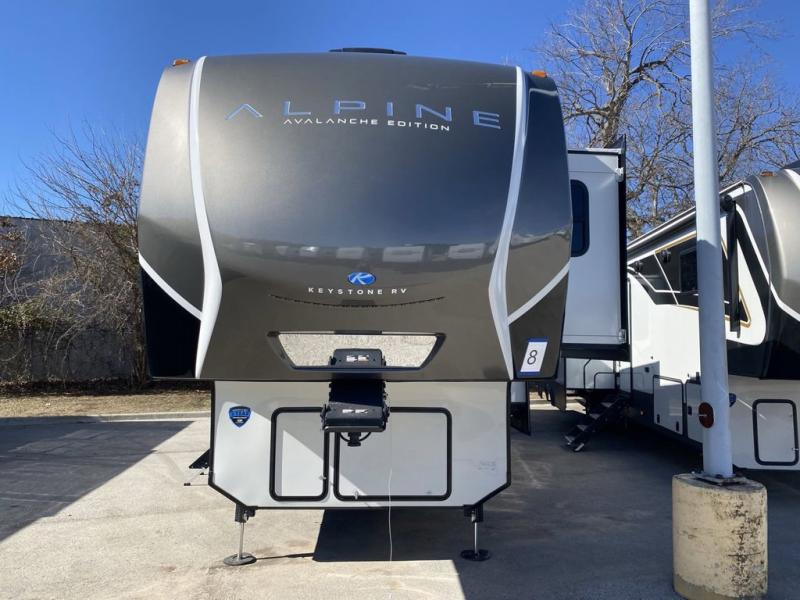 With any Keystone luxury Alpine Avalanche Edition fifth wheel, you will experience wide-body construction that allows you to stretch out and stay awhile during any season thanks to the Polar Pack All Season Protection that includes a heated and enclosed underbelly, an Astro foil reflective layer on the roof, front and rear walls, and two static attic vents, plus more! The interior offers hardwood slide out fascia with wood accents, crown molding, plus your choice of modern interior design. There are many more Keystone exclusives, like the Tru-Fit slide construction, the in-floor heating ducts, KeyTV™, and much more to bring you a full-packed, luxury fifth wheel!
