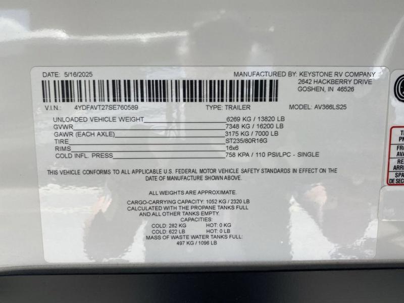 New 2025 Keystone RV Avalanche 366LS Fifth Wheel