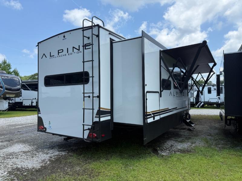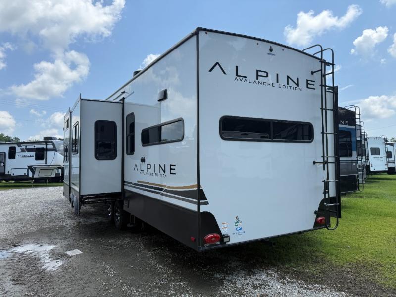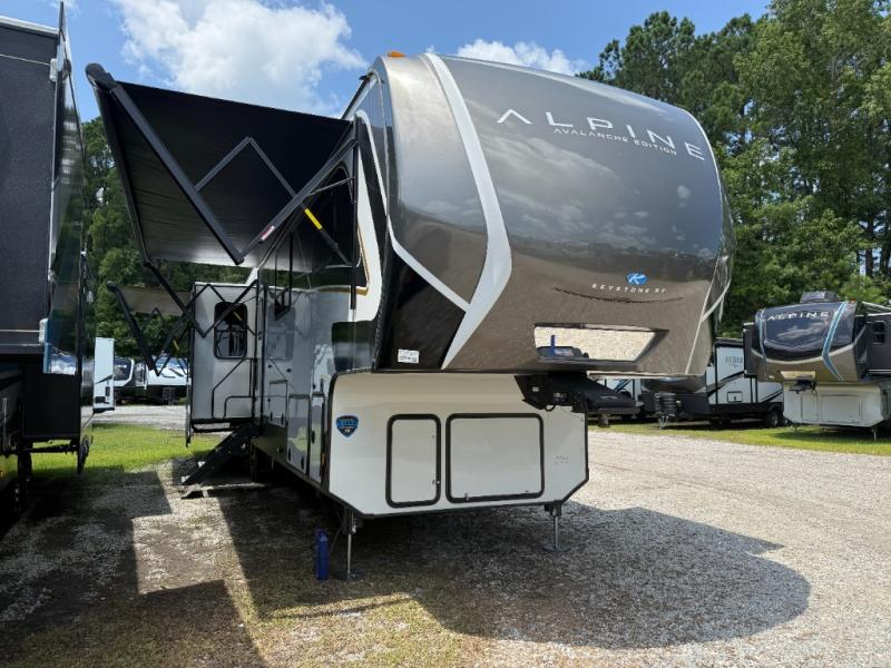 If you’re seeking luxury, space, and comfort on the road, the Keystone Alpine Avalanche Edition 379MB has it all! This thoughtfully designed fifth wheel features quad slide-outs, a private bunkhouse, and an open-concept living area — perfect for full-time RVers or families who want high-end amenities in a rugged build.