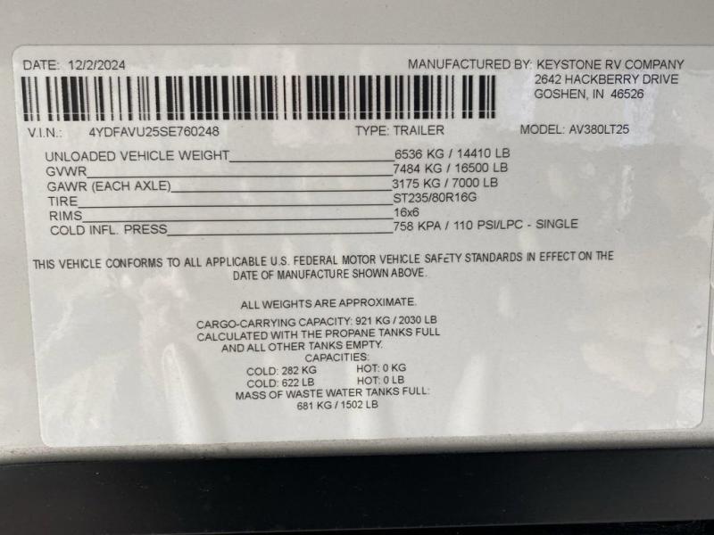 New 2025 Keystone RV Avalanche 380LT Fifth Wheel