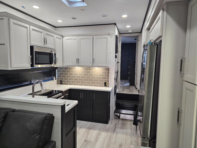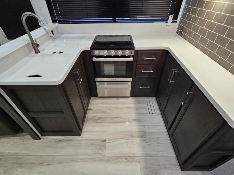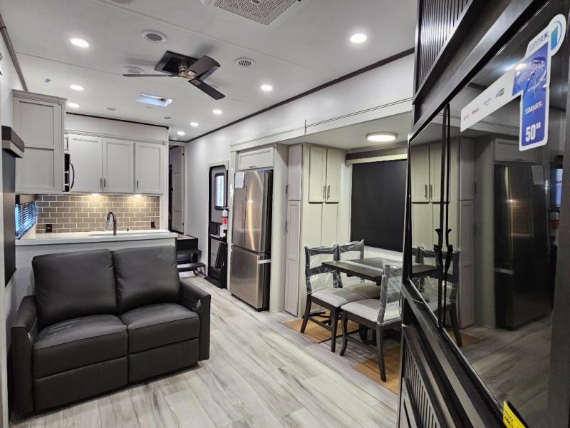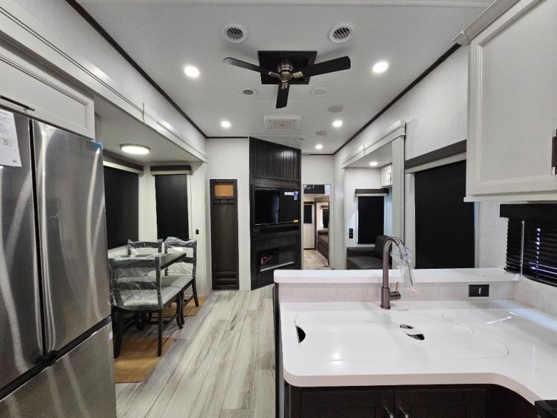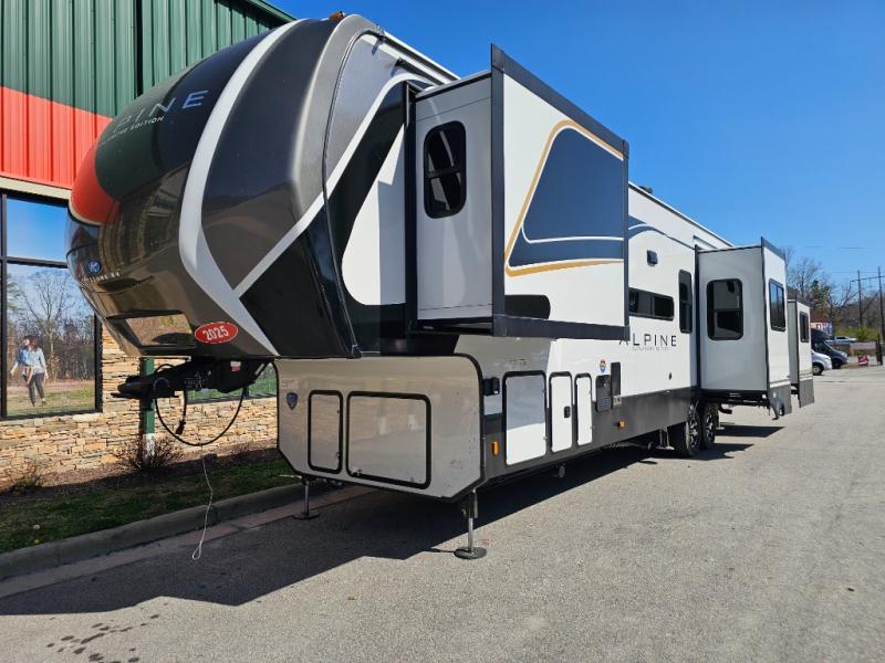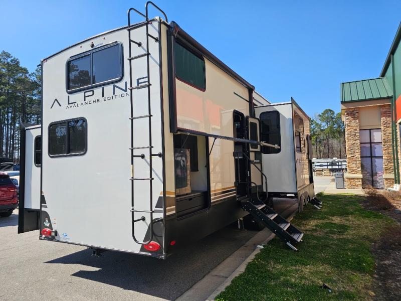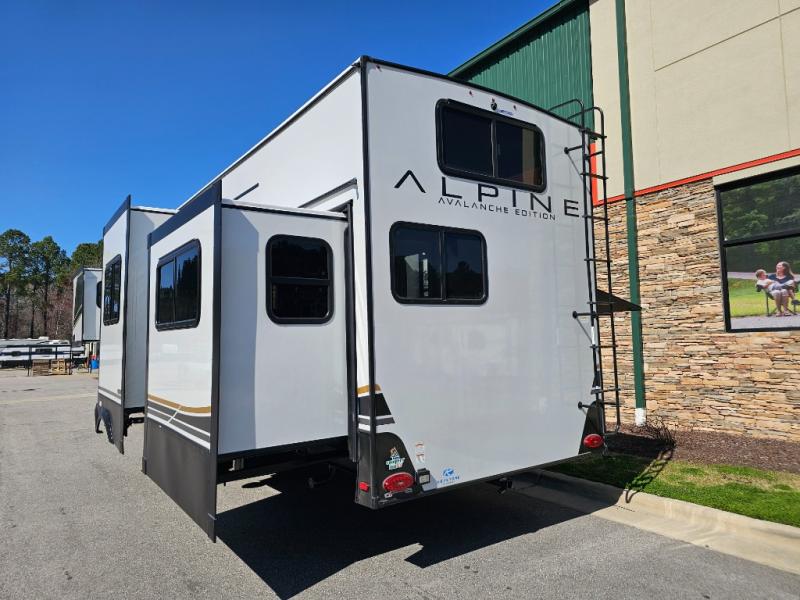 The Alpine Avalanche Edition 380LT is designed for full-time travelers and families who want expansive space, premium features, and year-round comfort. With four slide-outs, a mid-kitchen layout, a rear bedroom/den with loft, and an outdoor kitchen, this fifth wheel delivers residential-style living with exceptional versatility.