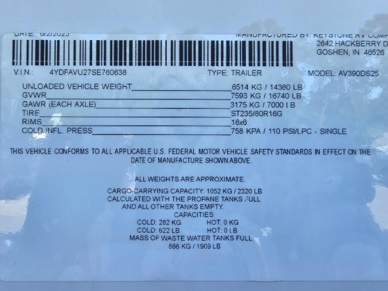 New 2025 Keystone RV Avalanche 390DS Fifth Wheel