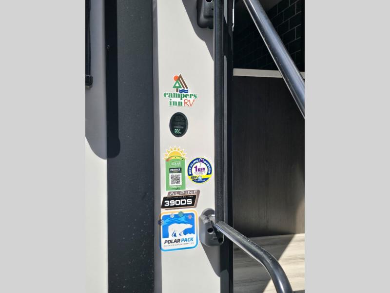 The 2025 Alpine Avalanche Edition 390DS is built for families and groups who want luxury, space, and flexibility on the road. With two full bedrooms, two full bathrooms, loft sleeping, and dual entry doors, this fifth wheel delivers comfort for everyone — whether you're full-timing or weekend camping.