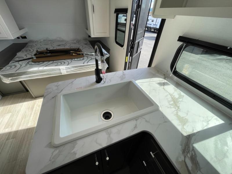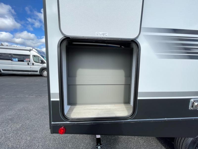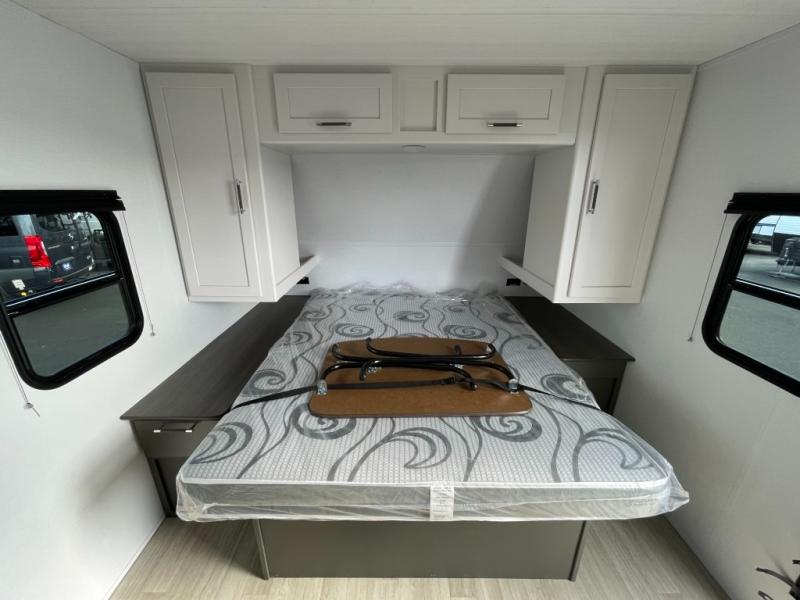 Camping trips just got sweeter in this travel trailer for three! There is a jack knife sofa slide out that will provide additional interior space, along with sleeping space for a guest. The front queen bed includes a privacy curtain when you need to get dressed, and there are dual nightstands to keep your things organized. A full kitchen will let you cook meals each day, and the spacious full rear bath means you won't have to use the camp's facilities in the middle of the night!