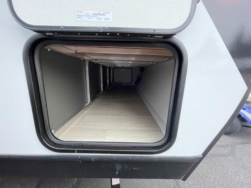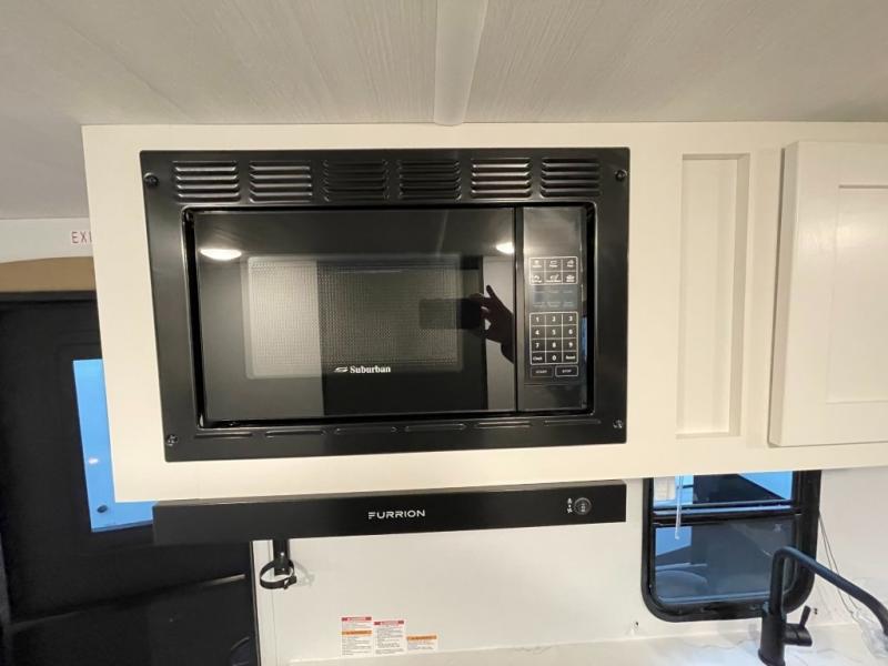 Simple and lightweight; this travel trailer is the unit you've been searching for! Once you arrive at your destination, unload the pass-thru storage, then head inside to start lunch in the full kitchen. Here, you'll find a microwave oven, two burner cooktop to cook meals on, and an 8 cu. ft. refrigerator for perishables. The rear U-shaped dinette can serve as dining and sleeping space for your guests, while you take the front corner queen bed. Don't let this travel trailer slip away!