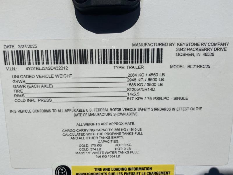 New 2025 Keystone RV Bullet 21RKC Travel Trailer