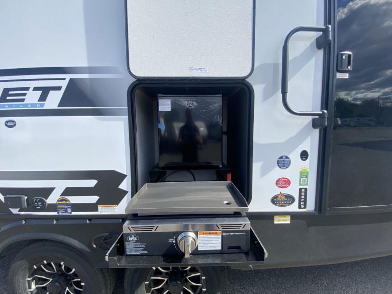 With any Keystone Bullet travel trailer you can experience lightweight camping with style! The interior design and functionality will impress you, along with the durable construction materials. Each is built with Hyper Deck RV flooring that is stronger, lighter and more resilient than traditional wood laminated flooring. The Girard tankless water heater is a feature you won't want to camp without, and the Blade high-performance air flow system will help keep you comfortable all summer long. It will be so easy to enjoy life at the campground since each model includes residential durable Beauflor vinyl flooring, deluxe night shades, solid surface seamless kitchen countertops, and many more comforts!