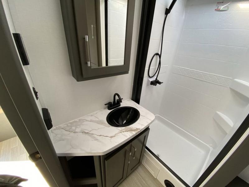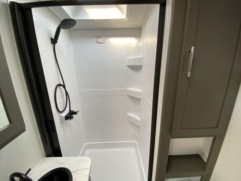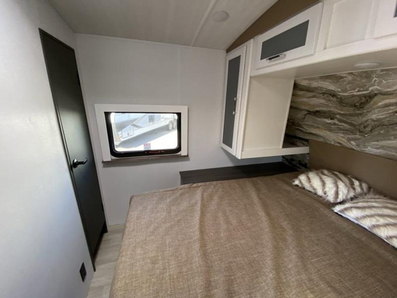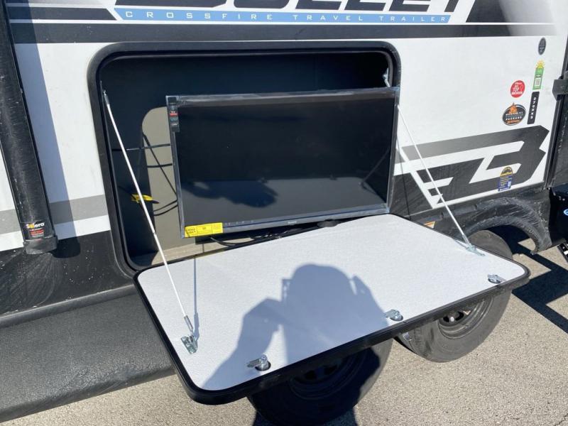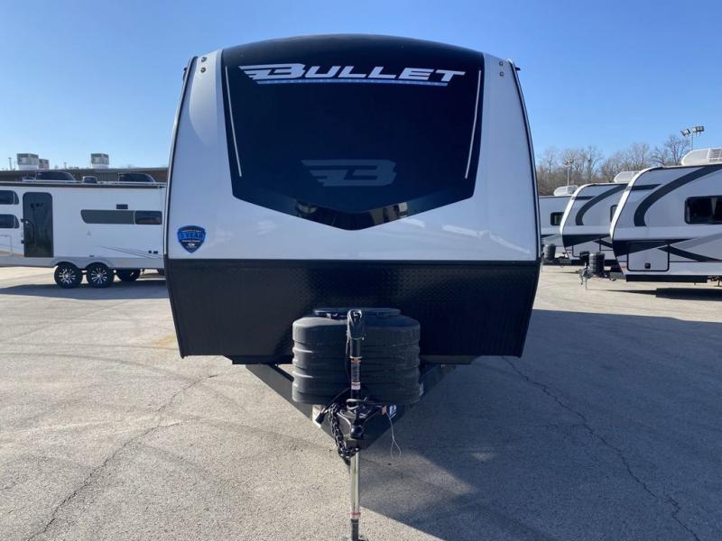 The Bullet Crossfire by Keystone are the perfect lightweight travel travel for rookie campers to seasoned RVers! Each one is built with a one-piece polypropylene underbelly, a fully walkable roof, and a high impact thermoset resin painted front cap for added durability. There is also a Dexter Torsion axle rubber ride suspension and Goodyear Endurance tires for a smooth tow plus a power tongue jack and power stabilizer jacks for easy set up. The interior will have you feeling right at home with deluxe night shades, updated Tranquil Timber decor, residential Beauflor vinyl flooring, and seamless kitchen countertops.