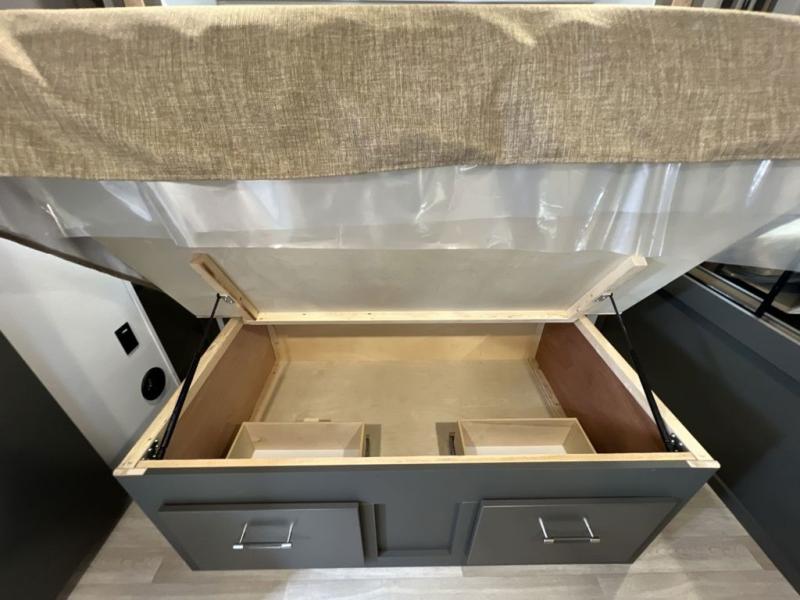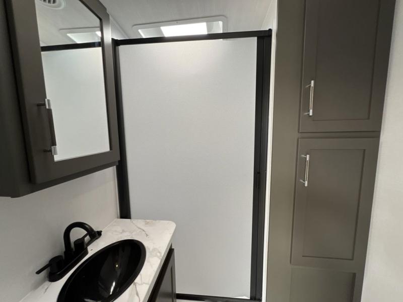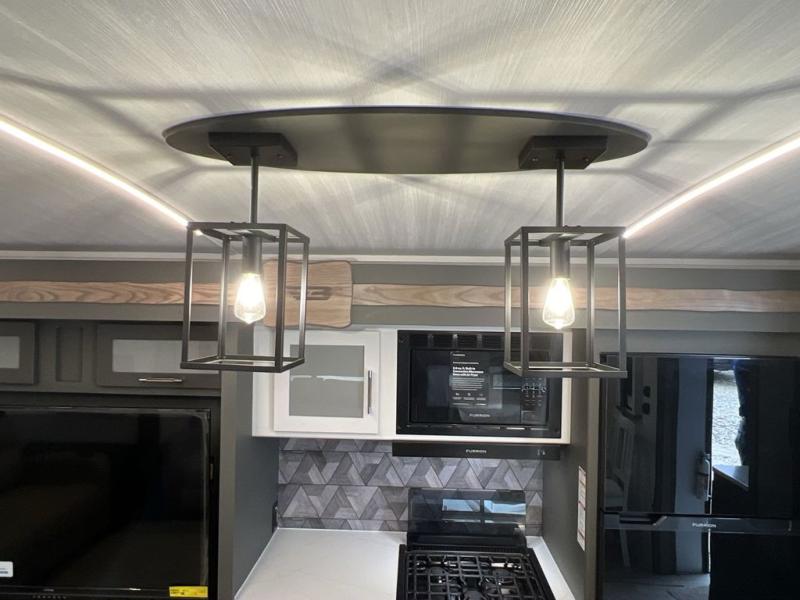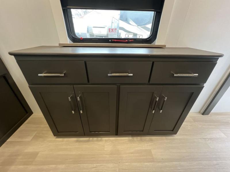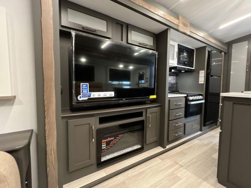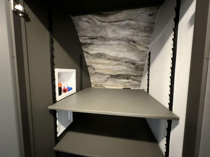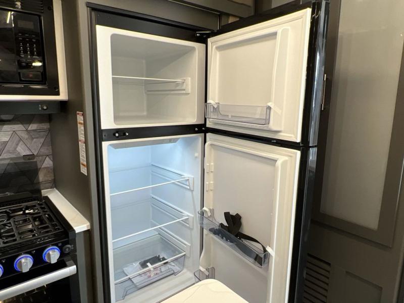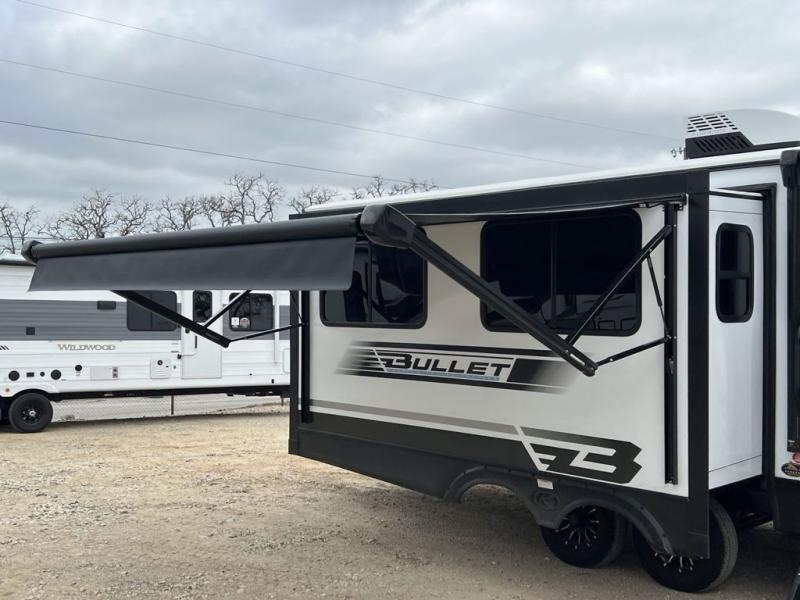 You'll be camping in style with this trailer in tow. You will wake up each morning on a king bed slide out, and there is a closet up front to easily get dressed. A wardrobe with TV prep is also found in the bedroom, along with washer/dryer prep to make wash day easier than ever. If you had guests stay over, they'll be waking up on the tri-fold sofa in the rear living area. Once everyone is ready for the day, you can make breakfast on the three burner cooktop or in the microwave oven, and there is a 10 cu. ft. refrigerator where milk and eggs can go back in. This Bullet kitchen also includes a kitchen island, a pantry, plus a hutch for ample storage space!