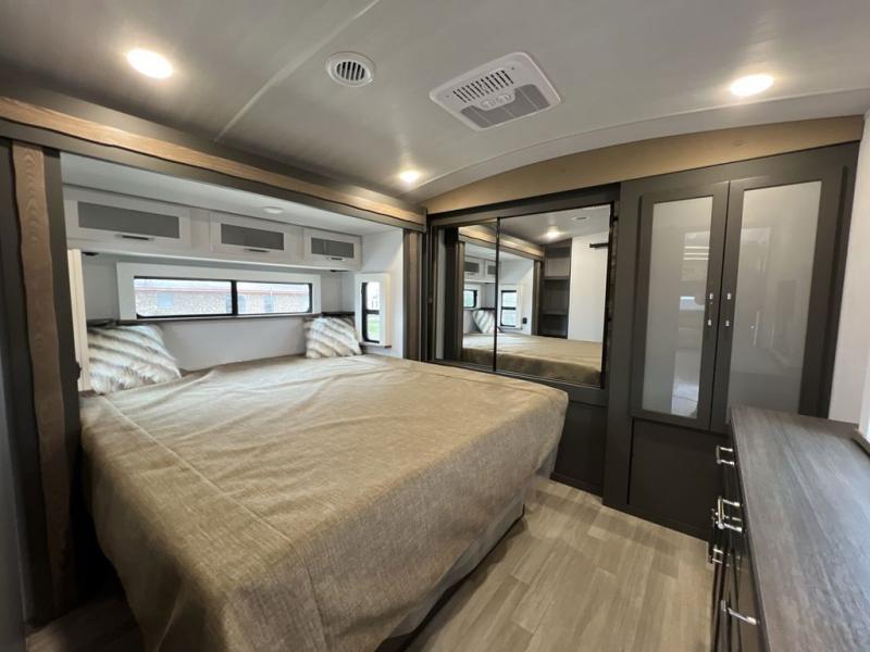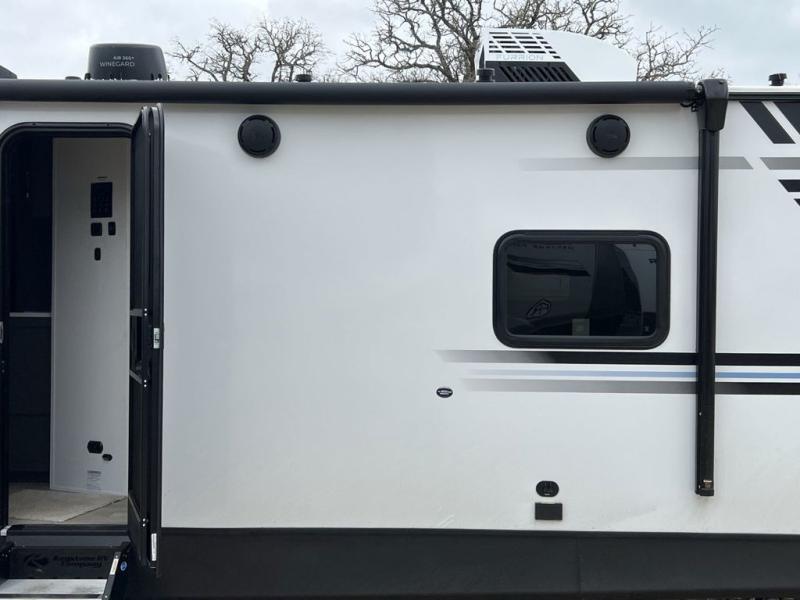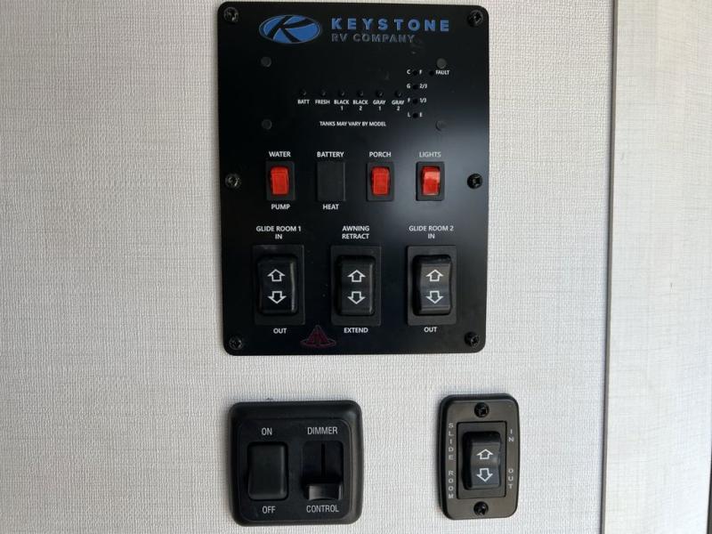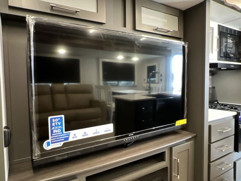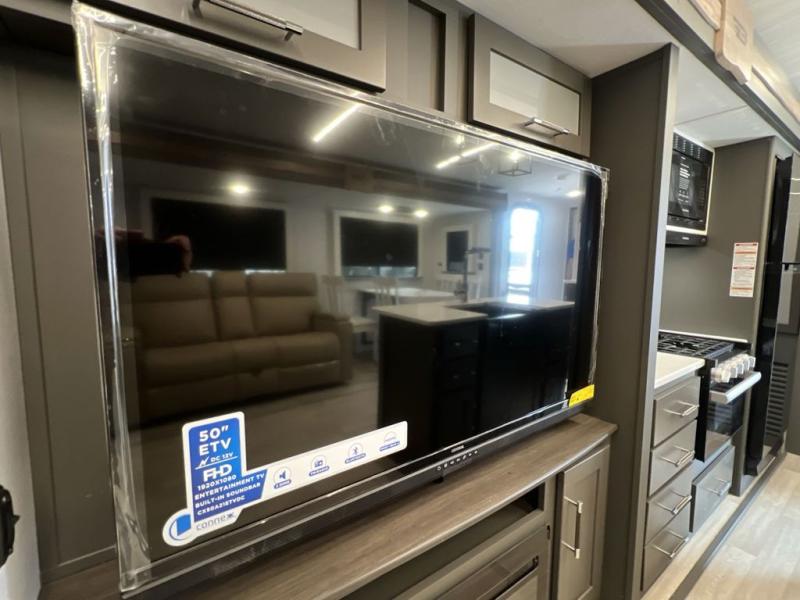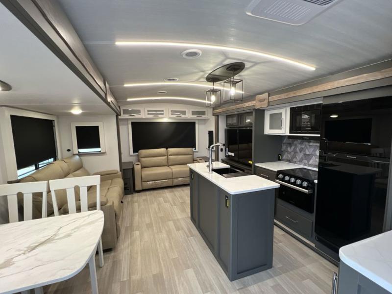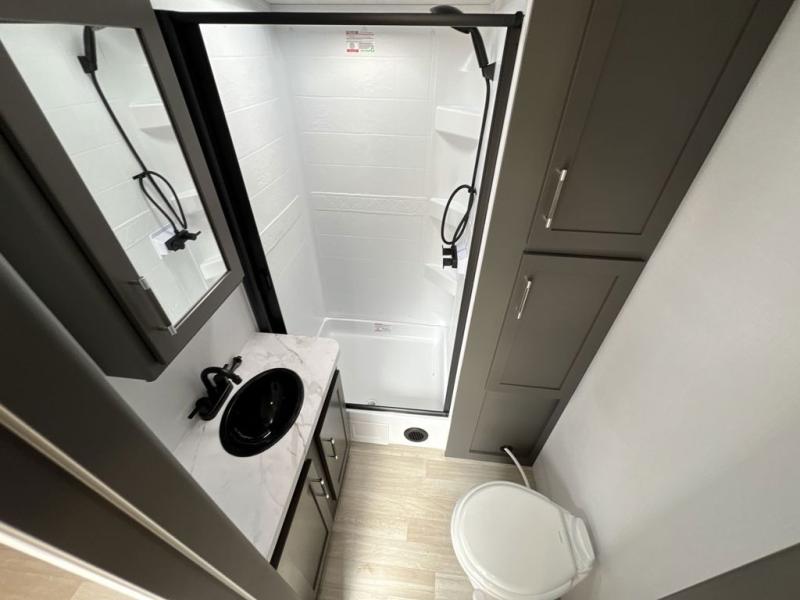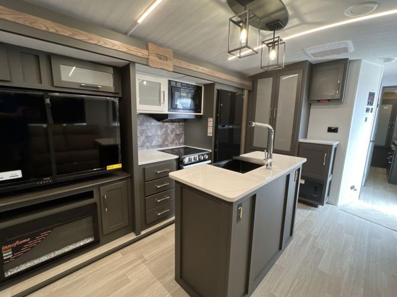 You'll be camping in style with this trailer in tow. You will wake up each morning on a king bed slide out, and there is a closet up front to easily get dressed. A wardrobe with TV prep is also found in the bedroom, along with washer/dryer prep to make wash day easier than ever. If you had guests stay over, they'll be waking up on the tri-fold sofa in the rear living area. Once everyone is ready for the day, you can make breakfast on the three burner cooktop or in the microwave oven, and there is a 10 cu. ft. refrigerator where milk and eggs can go back in. This Bullet kitchen also includes a kitchen island, a pantry, plus a hutch for ample storage space!